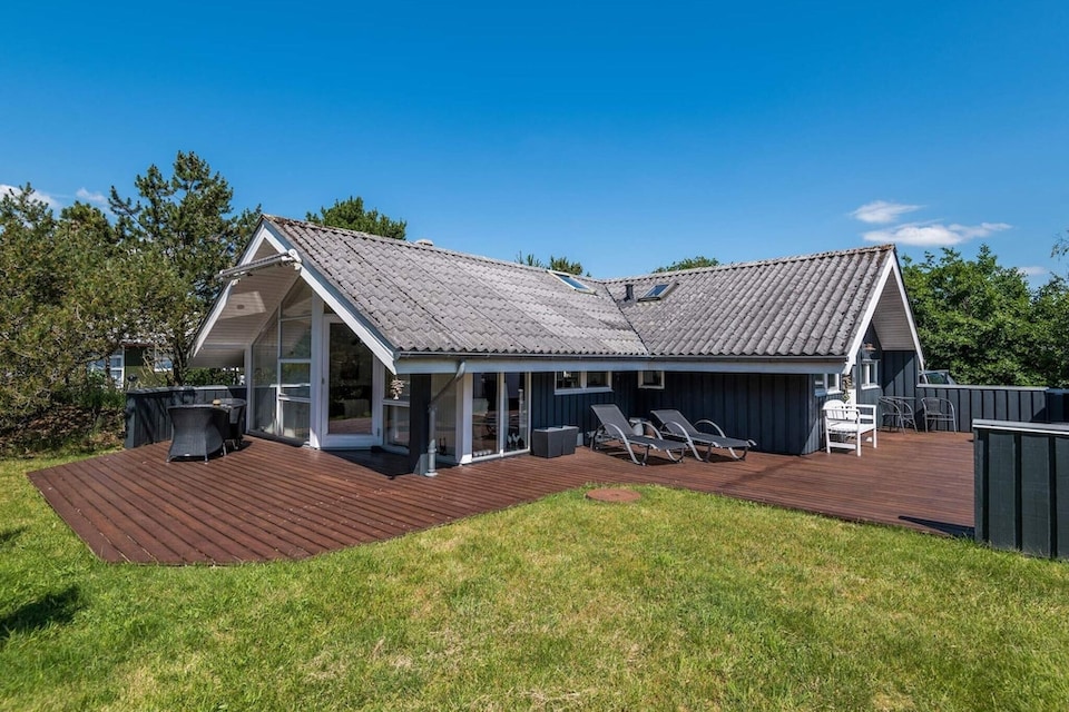 MAX 1 SMALL DOG - This lovely holiday home is located on a small blind road on a super nice, secluded and completely enclosed natural plot with many lovely cosy corners, wildlife and play opportunities. The holiday home in Rindby on Fanø is nicely furnished for 6 people with 3 cosy bedrooms with extra TV and a cosy sofa. From a nice entrance hall with space for clothes and boots, you enter the new, beautifully furnished kitchen, which invites you to spend many cosy hours while the food is being prepared. Adjacent to the kitchen corner with its nice dining area is the cosy living room with a wood-burning stove and direct access to both covered and large open terraces, where you can always find a lovely cosy corner with sunshine and shelter. A beautiful and well-appointed holiday home on a beautiful and secluded natural plot on Fanø on the west coast. Free final cleaning!A refundable deposit might be charged closer to your check-in date. The security deposit ensures a smooth stay and covers any additional services or consumption charges.This deposit covers utilities consumed during your stay and any additional services that may be taken.