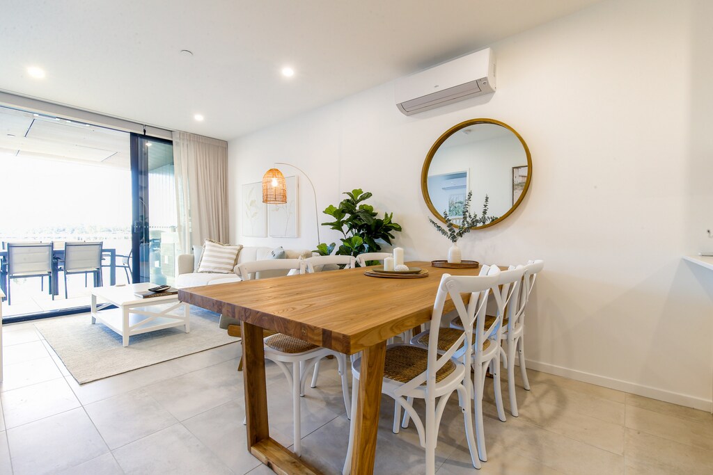 - Spacious balcony with outdoor dining and stunning bay-views