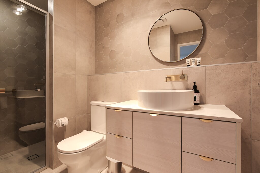 - Sleek bathroom