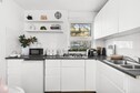 This thoughtfully designed studio maximises space and comfort. The open-plan layout features a queen bed with blackout blinds, ensuring restful nights, while the soft-toned décor creates a welcoming atmosphere. The living area boasts a two-seater couch facing a smart TV, perfect for unwinding after a day of exploring. The compact yet functional kitchen, equipped with a gas stovetop and microwave connects to a dining space for two, ideal for intimate meals. The bathroom, located just off the main area, includes all amenities and a spacious shower. There is also laundry access in the coin-operated communal laundry room just seconds away. This studio is ideal for those looking to enjoy Paddington’s lively culture and evening breezes and Sydney’s iconic charm from a peaceful, self-contained setting.