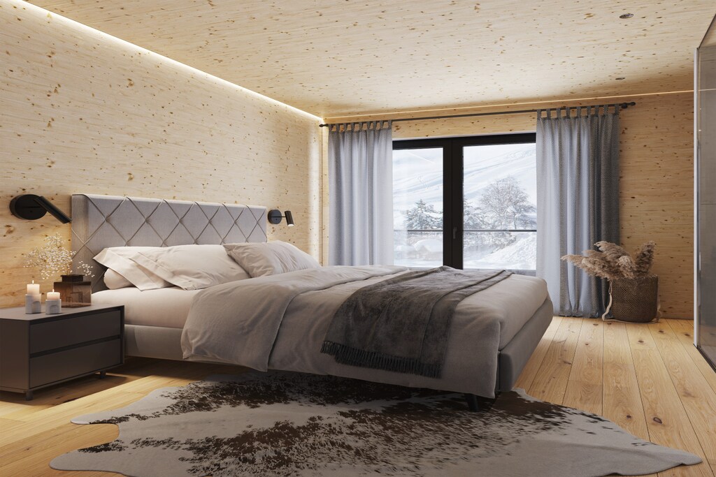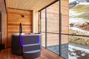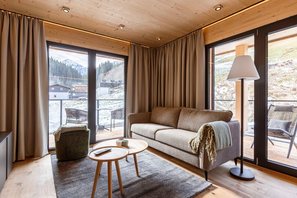 The suite covers 80 to 100 m² and offers enough space for up to 6 people. It has 2 bedrooms, each with a double bed, and a comfortable sofa bed in the living room. Both bedrooms have their own en-suite bathroom with shower and toilet, and there is also a 3rd separate toilet. In the private sauna you will find an additional shower in addition to the classic sauna equipment. You can enjoy your own outdoor bathtub on the comfortably furnished balcony or terrace.