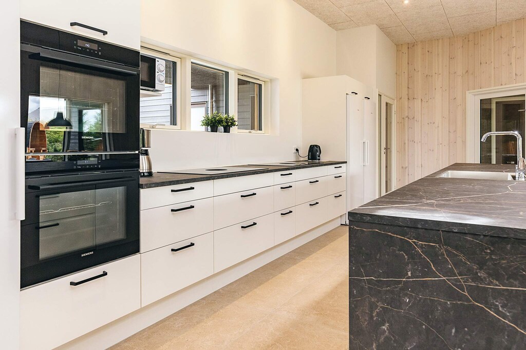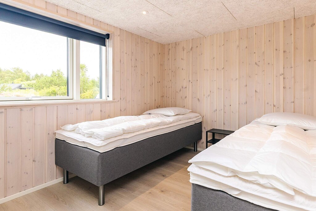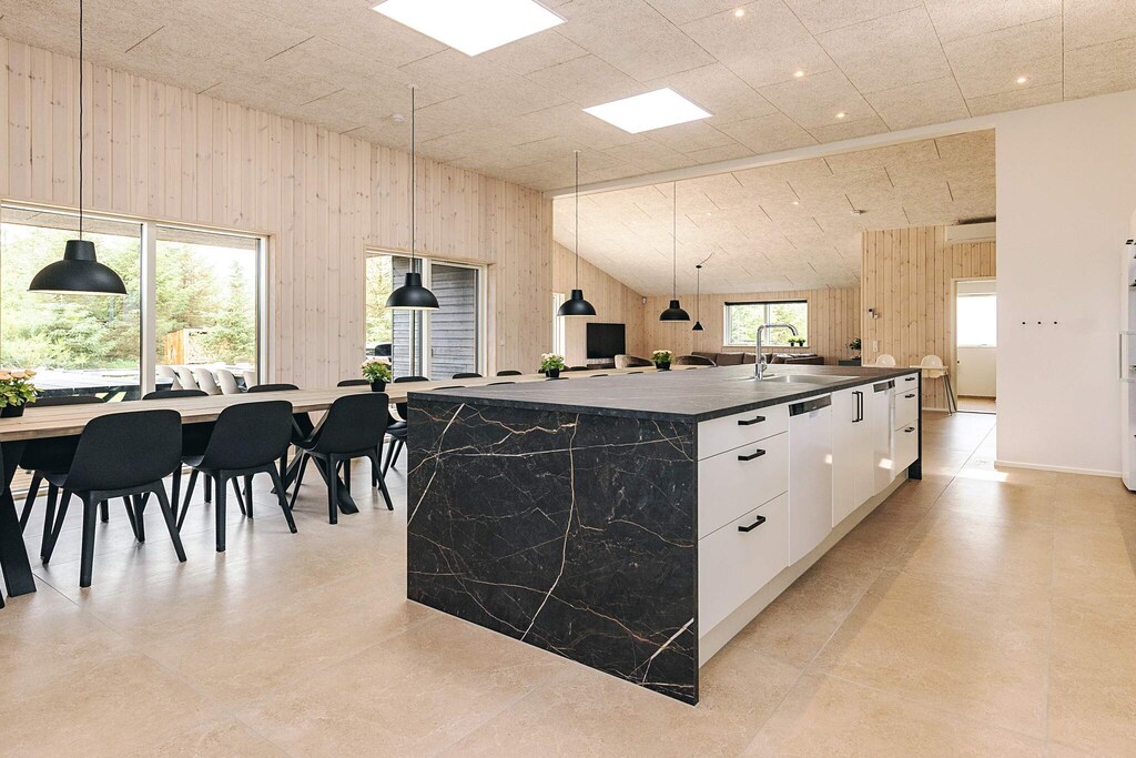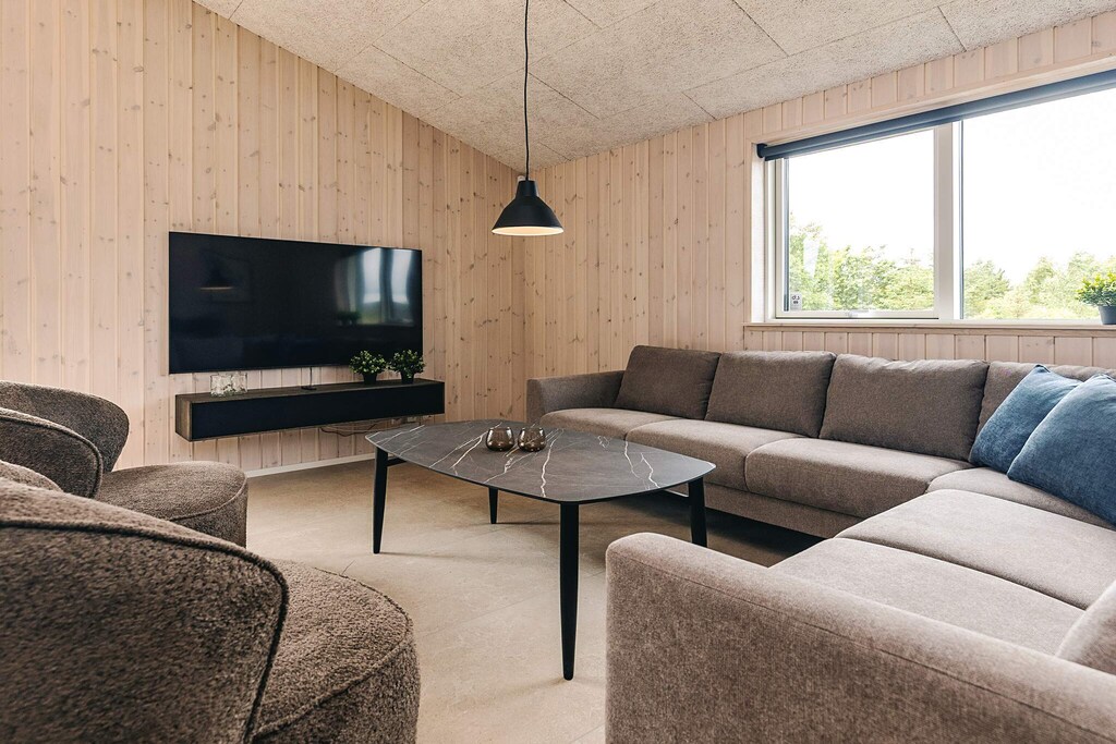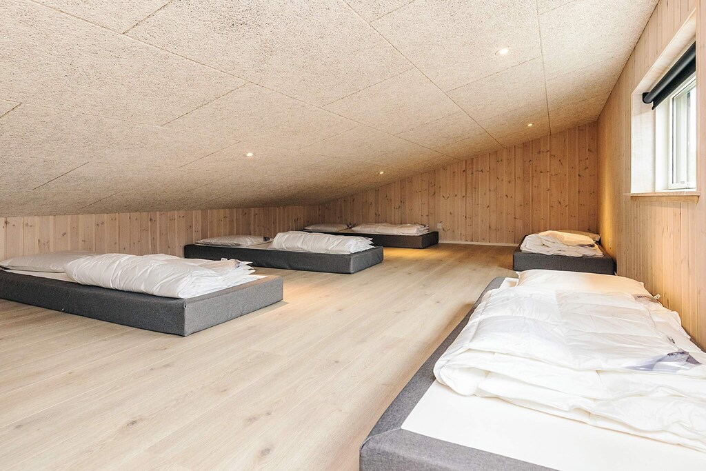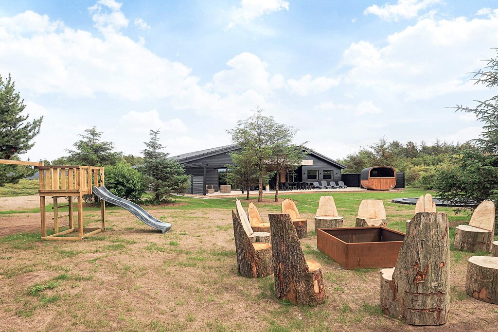 Architect-designed quality summer house (2025), out of the ordinary, with swimming pool, luxury 6-person hot tub and sauna barrel for 4 people, located approx. 500 meters from Limforden with its child-friendly beach. The holiday home is energy efficient with an air/water heat pump, enabling lower consumption. There is underfloor heating throughout the house and air conditioning from energy-efficient systems. The house also offers an electric charger for charging electric cars. The holiday home's swimming pool/wellness area offers, among other things, a 19 m2 pool, which is also a saltwater swimming pool, requiring minimal use of chemicals and avoiding the smell of chlorine. The swimming pool measures 3.8 x 5.00 x 1.40 m. There is a bright bathroom with a bathing area, toilet, shower, and underfloor heating. The house's activities provide ample opportunity for many hours of entertainment for both children and adults. There is billiards, a table tennis table that can be placed on top of the billiards table, table football, and darts. Outdoors, there is a petanque court, an in-ground trampoline (use at your own risk/insurance), a shelter, a play tower, etc., and soccer goals. The huge activity room is located in the basement, including a bar area, with direct access from the ground floor, and has a bathroom with shower and toilet. The summer house is bright and inviting, with high ceilings and spotlights. The house is practically designed with a combined kitchen/family room/living room. The kitchen/family room features a ceramic hob, extractor hood, separate oven with grill, microwave, dishwasher, coffee maker, refrigerator, and separate freezer with a minimum capacity of 140 liters. The living room has modern furniture, free high-speed internet, flat-screen TV with German channels, and Chromecast, where you can stream your own TV services. The house has 4 bathrooms, 3 of which have a bathtub, shower, toilet, and underfloor heating. There is also a washing machine in the house. High chairs are available for the little ones. The vacation home has 9 bedrooms, all with good quality beds, 6 of which have 2 single beds and 3 of which have 2 single beds and 1 bunk bed. In addition, there is a loft with 5 beds and 2 weekend beds for the little ones. The house is suitable for 18 adults and 8 children. There is direct access to the house's large wooden terrace, where you will find the house's outdoor hot tub for 6 people, which is automatically filled with water from the house's swimming pool and is therefore approx. 28 degrees Celsius and can be quickly heated to the desired temperature. There is also a sauna barrel and an outdoor shower. The house offers several open terraces with comfortable garden furniture, sun loungers, and 2 gas grills, where you can enjoy dinner while watching the sun set over the area. There is direct access from the living room to the house's large wooden terrace. The house also has a fire pit where you can enjoy roasting sausages and marshmallows or baking bread on a stick. A summer house that is out of the ordinary, suitable for all seasons, and a must-experience. From 2026, access to the water park at KulturCenter Skive (KCS) will be free. Not available for rent to youth groups or groups of tradespeople. For vacation stays only.A refundable deposit might be charged closer to your check-in date. The security deposit ensures a smooth stay and covers any additional services or consumption charges.This deposit covers utilities consumed during your stay and any additional services that may be taken.The final amount will be adjusted based on actual meter readings, actual usage of extra services, and any remaining balance will be refunded within 21 days after checkout.This deposit simply acts as a prepayment for charges that you would anyways pay for, ensuring a seamless stay and check-out experience.