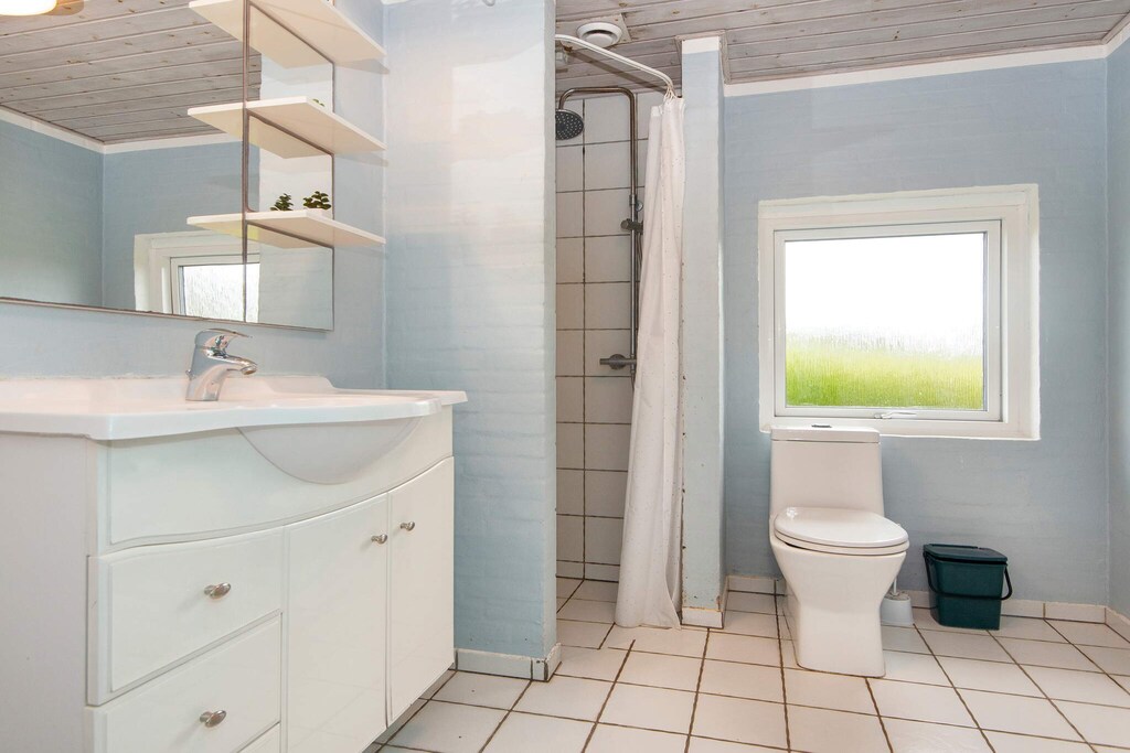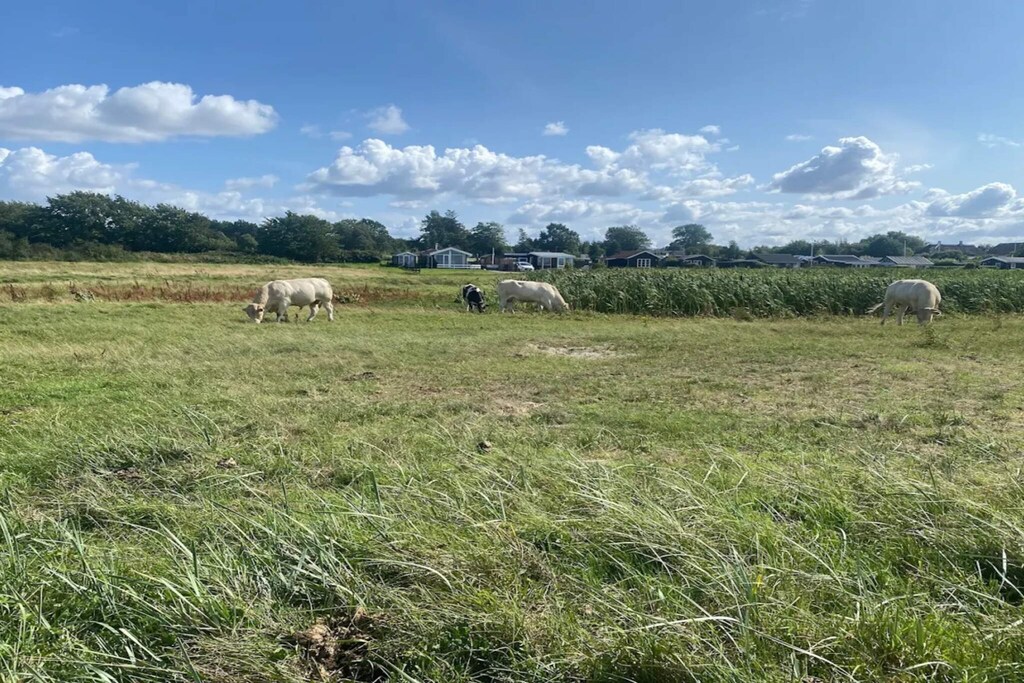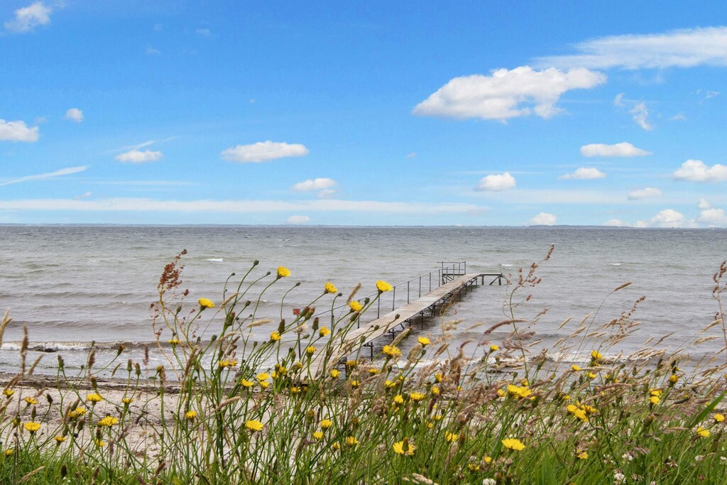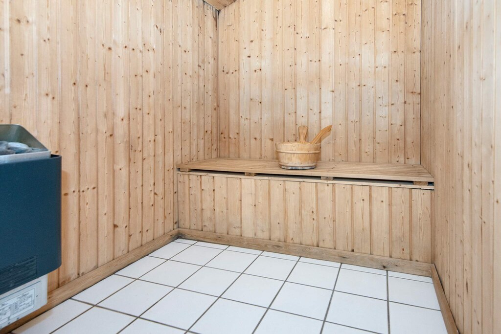 Approx. 200m from a child-friendly beach is this holiday cottage with swimming pool. The house was partly modernised in 2007. The pool area has 20 m² pool (1.35 m deep), 6-person prefilled whirlpool, sauna and underfloor heating. The layout of the house makes it suitable for 2 families sharing with e.g. 2 bathrooms of which one is connected to the pool room. 5 bedrooms, all have double beds, and 2 single beds on the mezzanine. The kitchen has dish washer, microwave oven and fridge/freezer. The large, combined dining and living room has flat screen TV with digital satellite, stereo sound system with CD player, wood-burning stove and exit to the terrace. There is an extra TV in the living room which the kids can use for playing PS4. 5 bedrooms with double beds (single beds you can part). 2 extra beds on the mezzanine. The house has a large plot for sunbathing, ball games etc. You can also just relax on the terrace. On the large terrace is a grill that you can also use for heating on cooler evenings. On the cooler days you can relax and enjoy the indoor water environment. For the children are swing, sandpit, trampoline (usage at own risk/insurance) and play items as well as cot and high chair. On the nearby camp site is a playground and a small grocer.