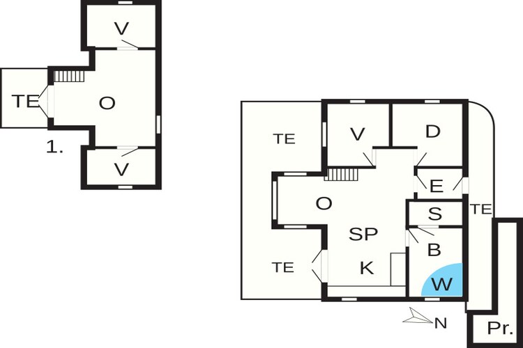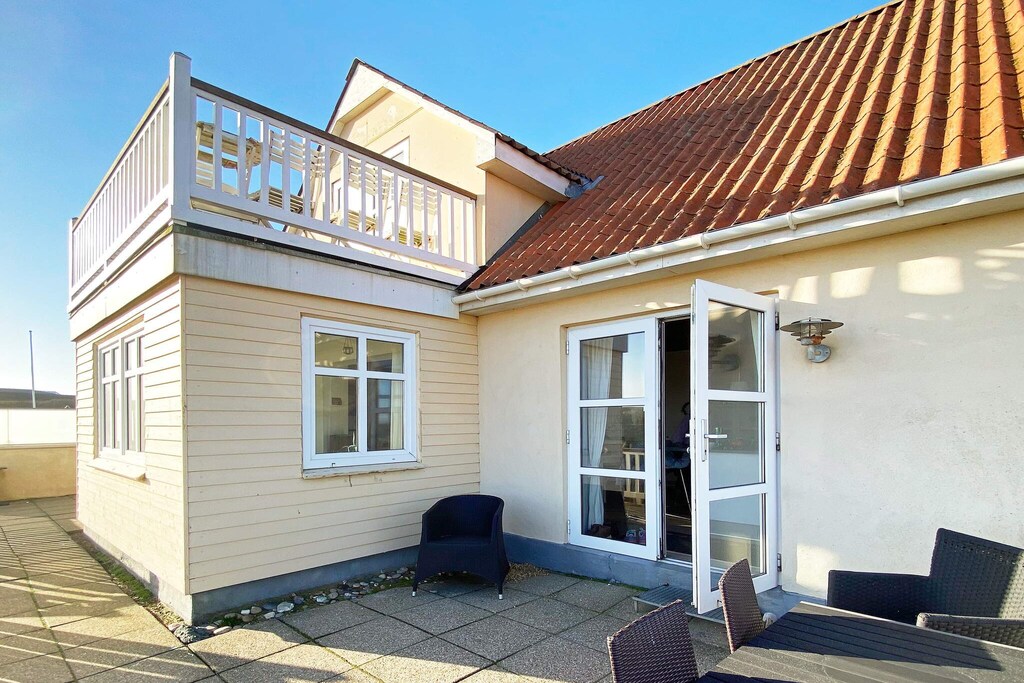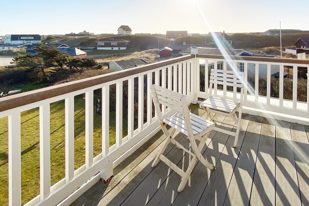 Well maintained holiday home with sauna and whirlpool in the house. Located just 200 m from the wide North Sea beach at Søndervig. The house is slightly elevated, with a beautiful view to Ringkøbing Fjord. It was built here in 1928, and the original renovation in 2005 has retained its original style. At the same time, the facility corresponds to the total of 155 m & # 178; large living space of modern standard and the expectations of today's holiday guests. On the ground floor open kitchen / living area with dining table and homelike ambience. Bright living area with great views. In addition, larger bedroom with 1DB and large bathroom with sauna and Jacuzzi below. On the upper floor there is a TV room with access to a balcony with sea view and two further, spacious bedrooms, both with a double bed and view of the surrounding dune landscape. In front of the house there is a large, sheltered patio area for sunny days. From this front terrace you have a small path access to a sheltered Kuhle in the dunes. Behind the house is a well screened terrace with evening sun. From there you have access to the dune plot with views to the North Sea. The cottage is quiet and nicely secluded on a good 1500 m & # 178; large plot in the dune landscape. Here you live nice for yourself and yet not far from the village. No rental to youth groups desired!