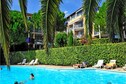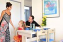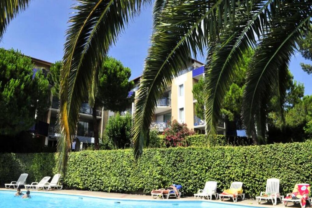 The apartment includes a well-equipped kitchenette for preparing meals, along with a private bathroom with a shower and WC. Guests can enjoy the outdoors on a private balcony or terrace with a garden seating area. For relaxation, the property boasts a solar-heated outdoor pool with a children’s area and a solarium, available from April to November depending on weather conditions.