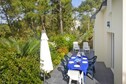 Short way to the beach and the scent of pine... Situated on a large natural plot on a slope (1,770 sqm) in a well-kept villa neighbourhood. The light-flooded rooms are tastefully decorated in the navy colours white and blue. You will enjoy the tranquillity of a small pine forest here, just a few metres from lively sandy beaches.