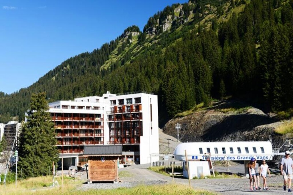 These comfortable apartments, located in the heart of Flaine Forךt at the foot of the Grands Vans chairlift, can accommodate up to six guests. Each apartment features a living room with a pull-out sofa bed for two, a bedroom with a double bed, and a cabin with two bunk beds. Pets are welcome for an additional fee.