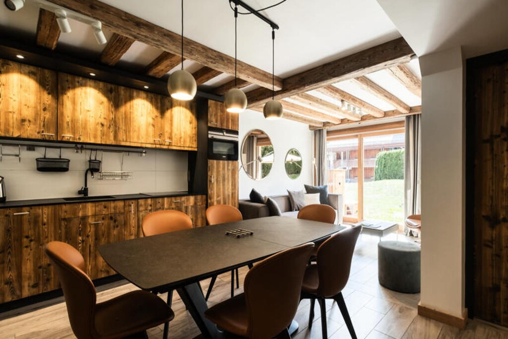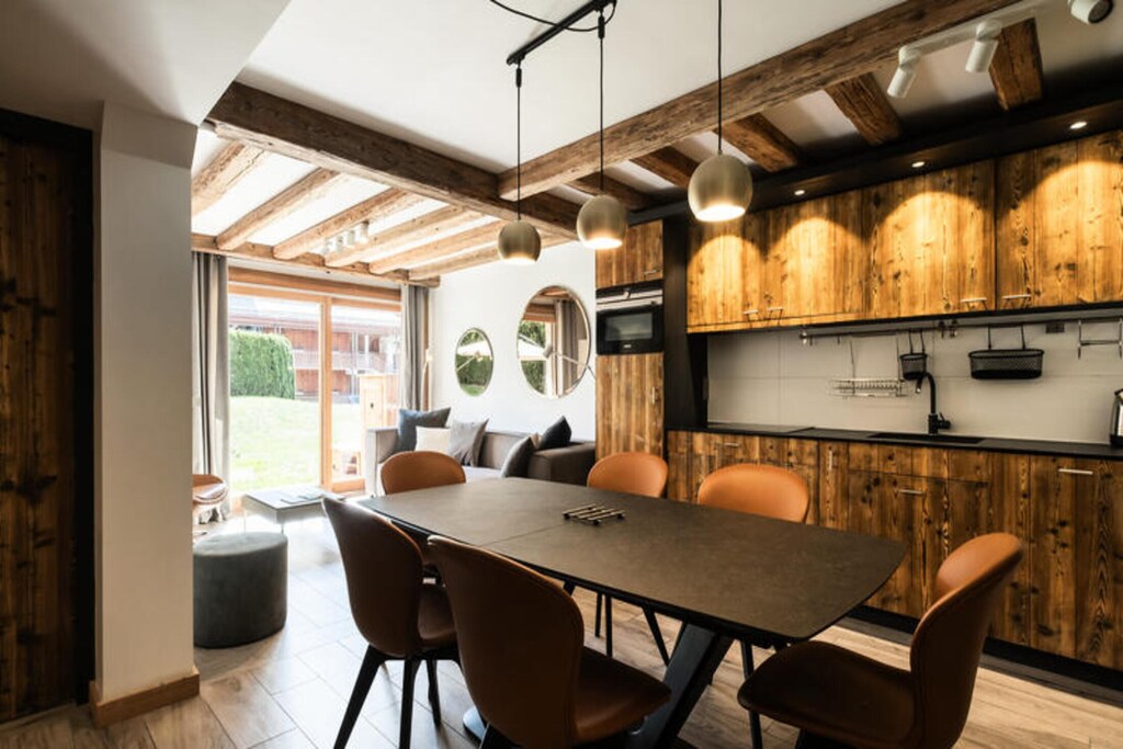 Property along with a modern alpine charm offers comfortable accommodation for up to 6 guests. This spacious 54 m², 3-room apartment features a well-designed mountain corner, ideal for families or small groups. Guests can enjoy a south-facing terrace with views of the Beauregard Massif, a living room with a 70-inch smart TV and wireless audio system, and access to underfloor heating for a cozy atmosphere. Two comfortable bedrooms include a double bed and two single beds, while the mountain corner offers additional bunk beds. A private garage with elevator access ensures secure parking, and the heated ski room with ski lockers and boot dryers adds convenience for winter sports enthusiasts.