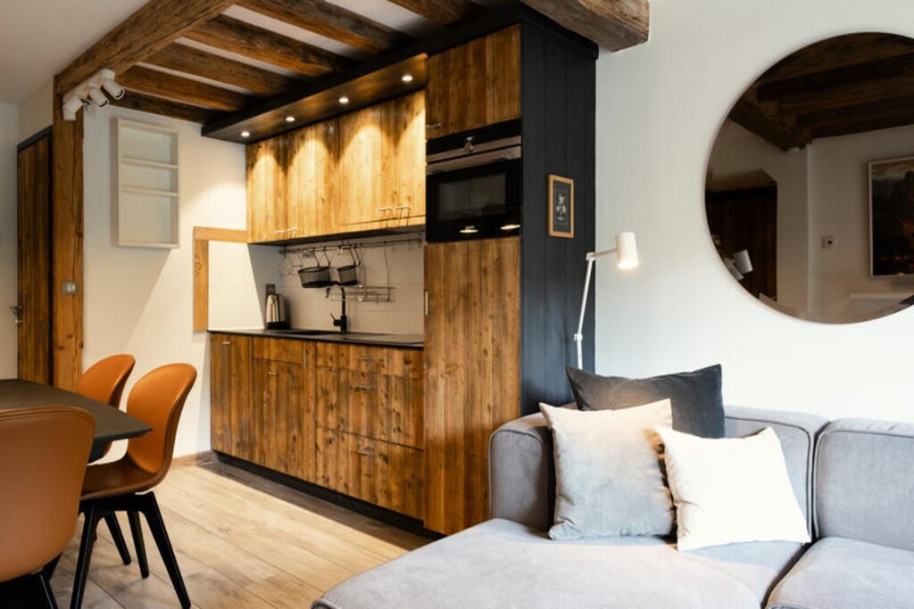 The well-equipped kitchen offers modern appliances, including a refrigerator, induction hob, dishwasher, Nespresso machine, raclette set, and a combined microwave oven, ensuring that guests can prepare meals effortlessly. The bathroom features a shower, towel dryer, and a convenient east-facing window, while the laundry room with a Bosch silent washing machine and dryer offers added convenience for guests. The property also boasts fast vDSL internet and WiFi with a repeater for a seamless online connection. Designed for practicality and relaxation, this property combines excellent amenities with thoughtful spaces for both leisure and functionality.