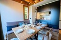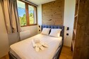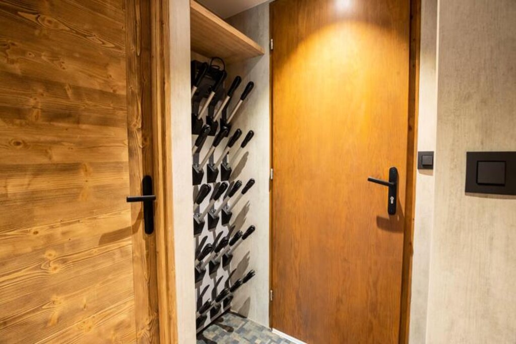 Spanning two levels, the 75 m² apartment has been thoughtfully designed to accommodate up to ten guests. On the ground floor, you’ll find a welcoming entrance hall with boot dryers, a ski storage room, and a cozy living area complete with a sofa, TV, and dining table. The fully equipped kitchen includes everything you need to prepare hearty meals after a day on the slopes, from a refrigerator and oven to a coffee machine and toaster. Upstairs, three inviting bedrooms await: two double rooms and a bunk room that sleeps four. Additional conveniences include three modern bathrooms, a washer-dryer, and ample storage space for all your belongings.