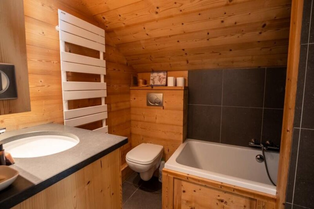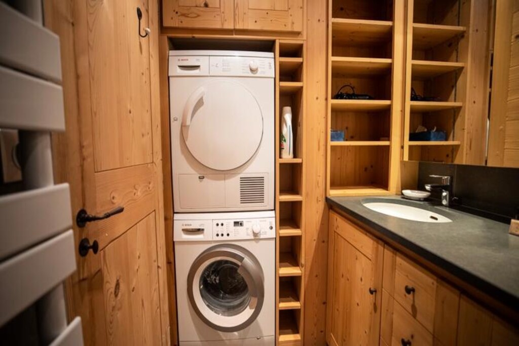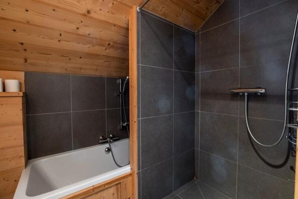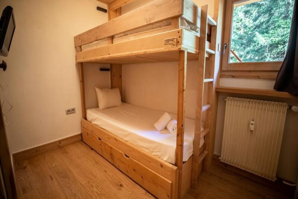 Spread across two floors, this spacious apartment comfortably accommodates up to eight guests. The first floor features a welcoming living area with a large lounge, TV, and fireplace, seamlessly connected to a dining area and a fully equipped kitchen. Two bedrooms with bunk beds, one double bedroom, and a bathroom with a shower complete this level. Upstairs, you'll find two elegant double bedrooms, one with a 160cm bed and the other with a 180cm bed, as well as a second bathroom with a bathtub, shower, and toilet. Modern amenities like Wi-Fi, a Nespresso coffee machine, a raclette grill, and a washing machine ensure a hassle-free stay.