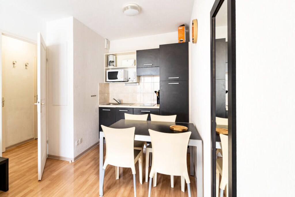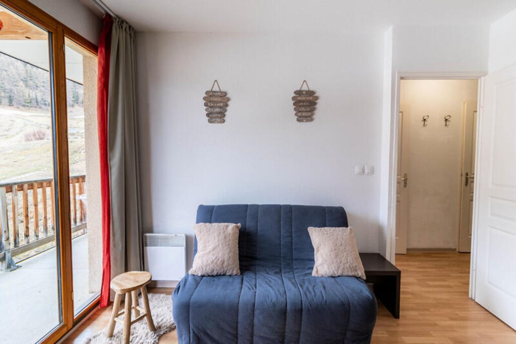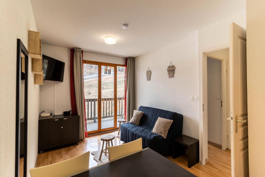 This 30m² east-facing apartment offers a peaceful and comfortable retreat, ideal for up to 4 people. It features a spacious living room with a fully equipped kitchen, perfect for preparing meals after a day on the slopes. Sleeping arrangements include a bedroom with a bunk bed and a 2-person sofa bed, plus an additional sofa bed in the living room. Guests can enjoy a variety of amenities, including a heated indoor swimming pool with a whirlpool and an outdoor terrace for sunbathing. The pool is open seasonally, with availability in both summer (June 29 – August 31, 2024) and winter (December 7, 2024 – April 12, 2025).