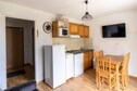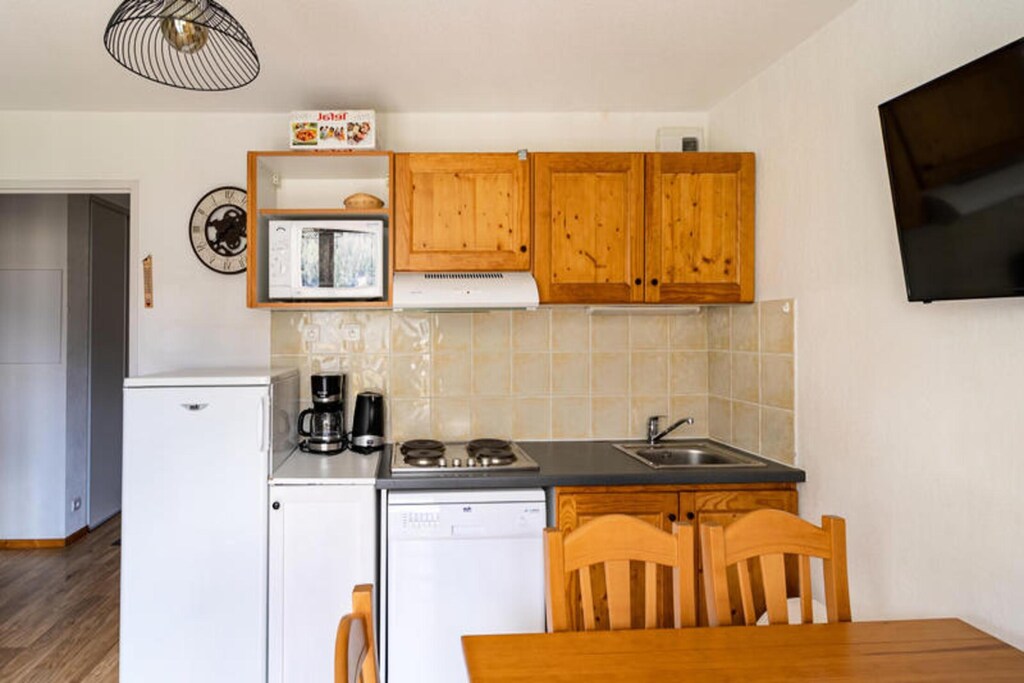 The apartment includes a fully equipped kitchen, ideal for self-catering, with a range of appliances such as a kettle, toaster, filter coffee maker, and an Italian coffee maker. The kitchen is designed to support the needs of active guests, providing the necessary tools for preparing meals after a day of outdoor activities. For additional comfort, the property is equipped with heating and a vacuum cleaner. With the inclusion of kitchen utensils and modern amenities, this apartment provides a homely and convenient retreat in the heart of the Les Orres resort area.