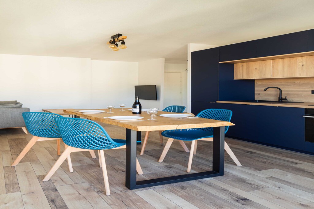 Apartment in Lyon with 2 bedroom(s) and capacity for 4 people. 50 m² accommodation. It has an elevator, garden furniture, washing machine, internet access (wifi), hairdryer, balcony, electric heating, 1 TV. The open-plan kitchen, with induction hobs, is equipped with a refrigerator, oven, freezer, crockery/cutlery, cooking utensils, coffee maker and kettle.