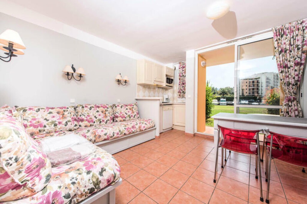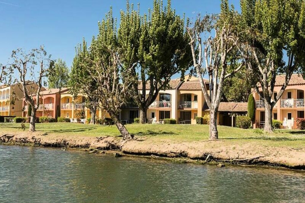 Nestled just 800 meters from the beach, the Résidence Les Rives de Cannes Mandelieu offers a tranquil retreat on a picturesque peninsula surrounded by the Siagne River. The residence features small, charming buildings designed to blend seamlessly with the stunning natural surroundings. Guests can enjoy access to a variety of amenities including an outdoor swimming pool and paddling pool (open from April 6 to November), a fitness room, and the Riviera restaurant, all available for an additional fee. For a unique experience, enjoy access via boat through the private pontoon.