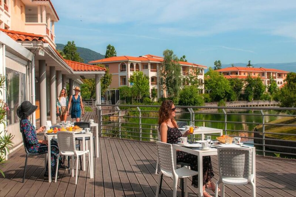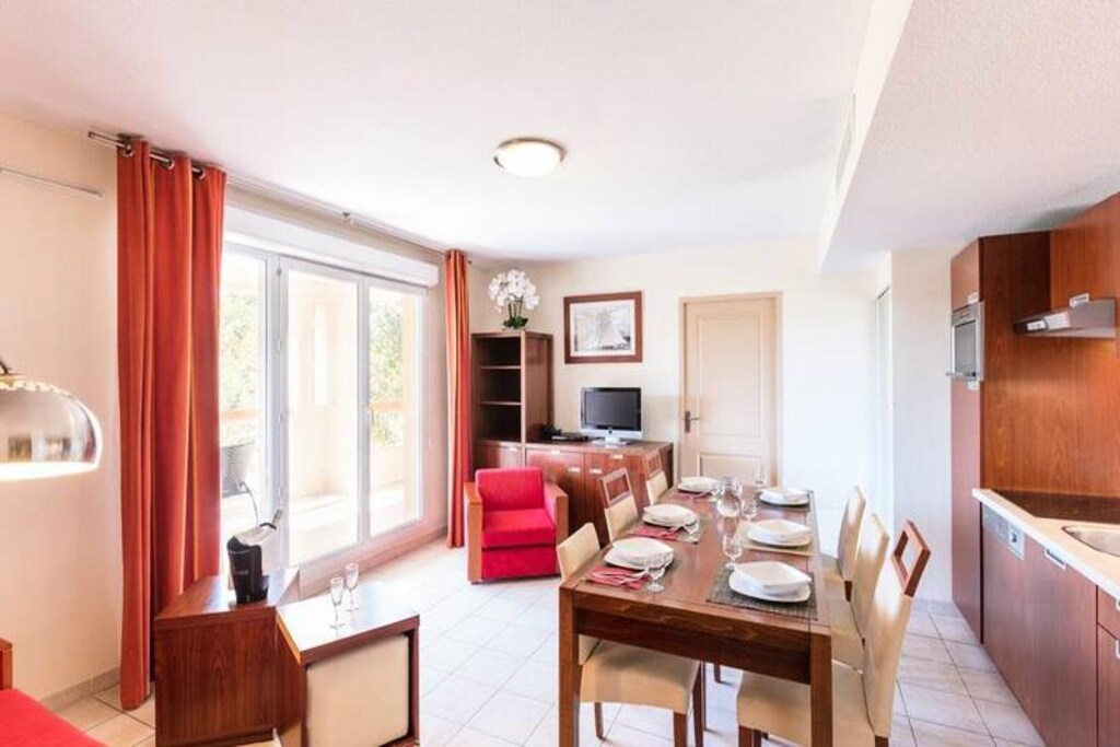 Set within a beautifully landscaped 6-hectare estate, this Provencal-style apartment offers a tranquil retreat near Mandelieu's sandy beaches and Cannes' iconic Croisette. The property features a 600m² outdoor pool with a children’s area, water jets, and a solarium terrace with deck chairs. Guests can enjoy amenities like a tennis court, multi-sport field, children’s playground, and a relaxation area with a whirlpool bath, sauna, and hammam. Accommodation includes a living room with a sofa bed, one double bedroom, and another with two single beds. Pets are welcome for an additional fee.