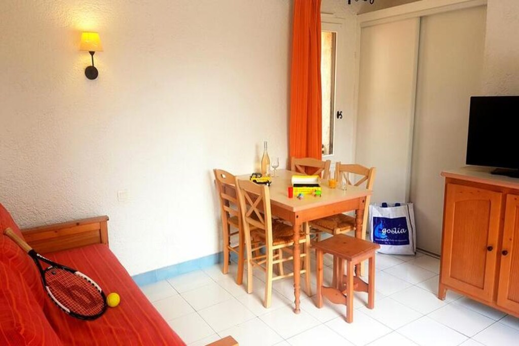 This charming apartment offers a cozy retreat in the heart of Saint-Raphaël. It features a comfortable living room with a sofa bed, making it perfect for up to four guests. The unit also includes a closed cabin area with two single bunk beds, ideal for children or small groups. The accommodation is pet-friendly, with pets allowed for an additional charge, making it suitable for those traveling with their furry companions. For added comfort, a private bathroom or shower and a WC are included. Guests can relax on their balcony or terrace, enjoying the peaceful atmosphere of the surrounding green area.