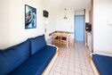 The fully equipped kitchen opens to the living room, providing a convenient space for self-catering. The apartment also offers access to three swimming pools, an aquatic area with slides, and a paddling pool with water games. Additional services like cleaning, bed linen, and towels are available for an extra charge, ensuring a comfortable and enjoyable stay.