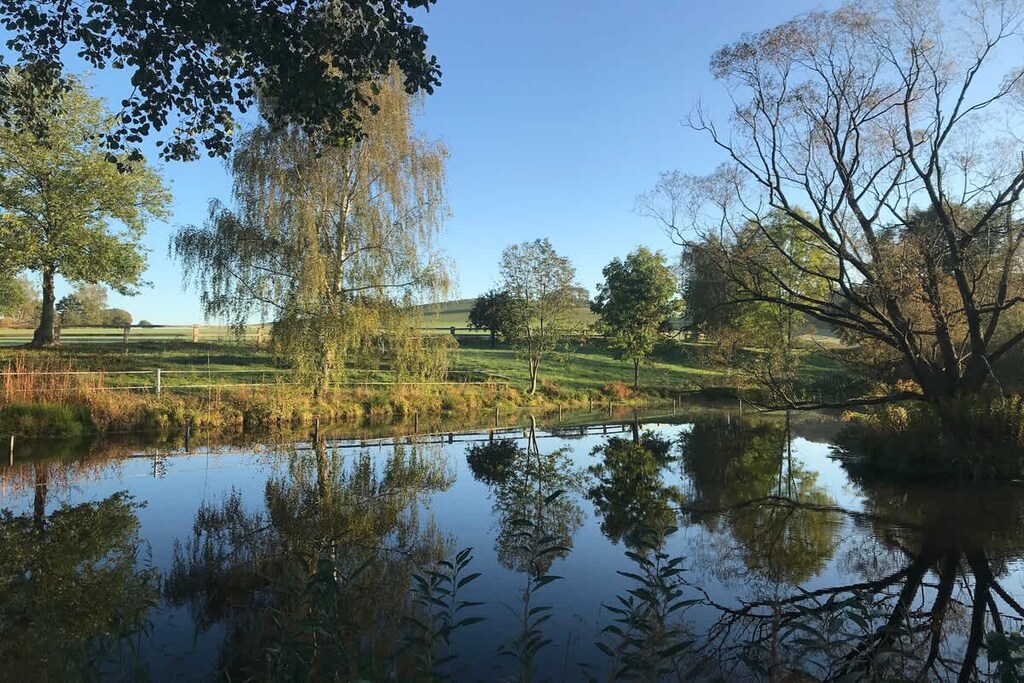 Tiny house between two small natural ponds with a huge terrace including barbecue and wood-burning stove, surrounded by paddocks, an open stable within sight, and the Hexenburg riding facility in the immediate vicinity. The house offers a dishwasher, refrigerator with freezer compartment, and a private bathroom with shower/toilet. Double beds on two sleeping galleries for a total of five people; in addition, the sofa area can be converted into a bed.