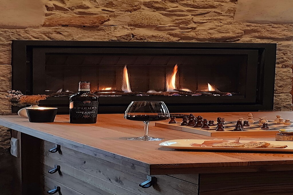 Für besondere Wohlfühlmomente sorgen zwei moderne Gaskaminöfen, die eine gemütliche Atmosphäre schaffen, sowie eine private Sauna – ideal zum Entspannen nach einem erlebnisreichen Tag. Hochwertige Schlossdielen aus massiver Eiche und individuelle Tischlerarbeiten verleihen der Wohnung ein exklusives Ambiente. In der voll ausgestatteten Küche mit Spülmaschine, Backofen und Mikrowelle lassen sich gemeinsame Mahlzeiten stilvoll zubereiten.