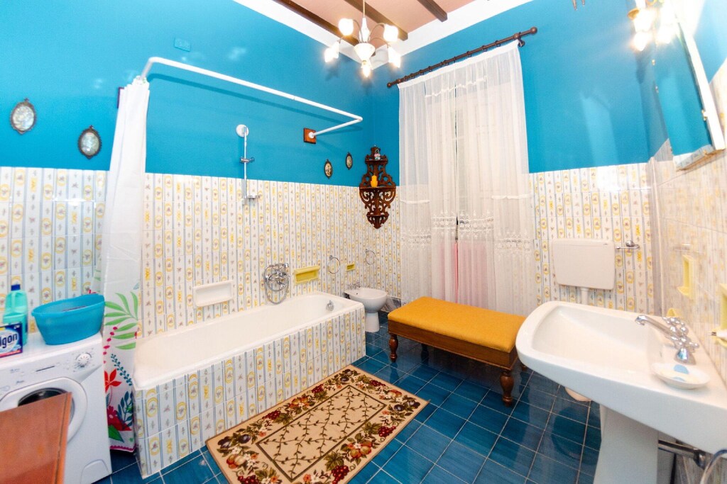 1 spacious double bedroom with cupboard, chest of drawers, SAT-TV, exit onto a big terrace (40 sqm) with swing and stunning views onto the hills, 1 bedroom with 1 double bed with cupboard, SAT-TV, terracotta tiled floors, fresco – it is said that Napoleon Bonaparte slept in this bedroom, 1 double bedroom with cupboard, SAT-TV and 1 double bedroom with exit onto a terrace (12 sqm), cupboard, SAT-TV – connecting door from this bedroom to the French sized bedroom, 1 big and beautiful bathroom with green marble, tub, separate shower, basin, wc, bidet. Stairs to the 2nd floor: 1 big bathroom with tub/shower, washing machine, wc, bidet and basin.