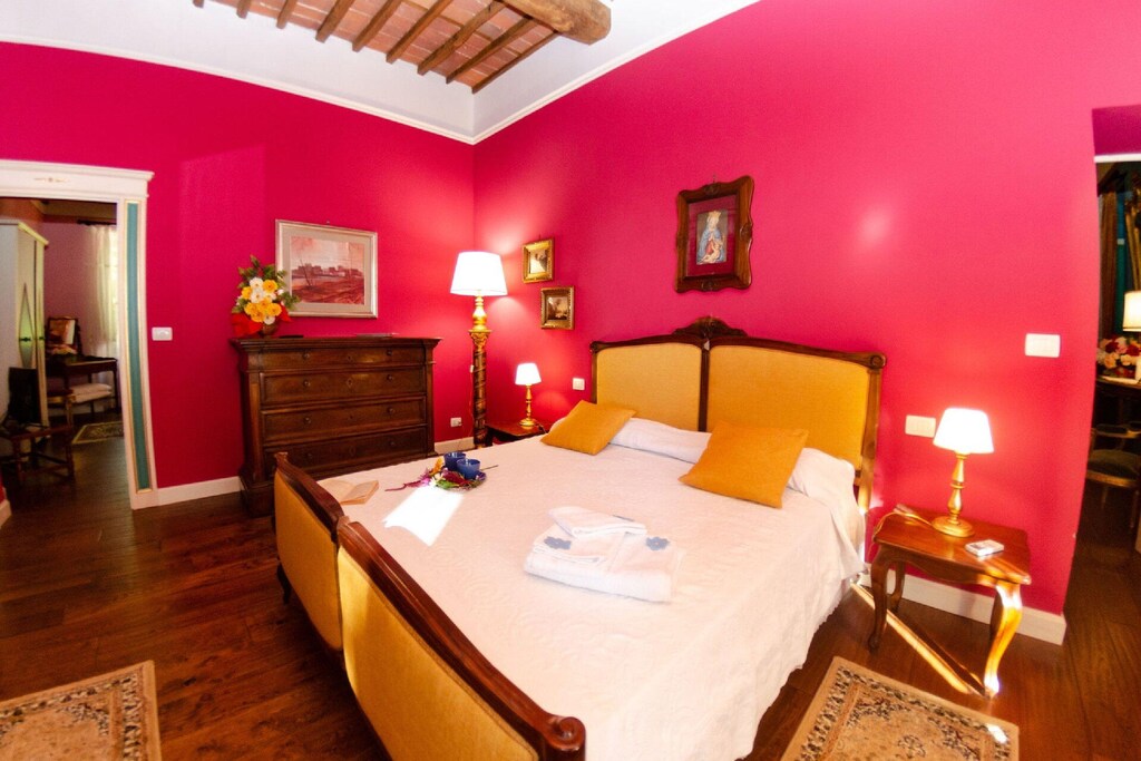 The villa is furnished with great care, cheerful painted walls (pink, light blue, green and red), beamed ceilings, terracotta tiled floors, period furniture, luxury tapestry, air-conditioning in all bedrooms, wifi included.
