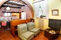 Entrance on the ground floor: spacious entrance hall with table, wooden benches, dining room with dining table, fire-place, fully fitted kitchen with induction hob, electric oven, microwave, dishwasher, fridge/freezer, coffee-machine, fire-place, angle with 2 upholstered chairs, SAT-TV, exit onto a patio equipped with table, chairs, barbeque, sun-umbrella, fountain, 1 ante-bathroom with marble basin, 1 bathroom with shower, wc, bidet, basin, locker room.