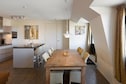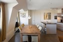Each apartment is equipped with a modern kitchen featuring a combination microwave and dishwasher. The air-conditioned living room ensures year-round comfort. Most units have two bathrooms, one with a bathtub and the other with a shower. Apartments with an infrared sauna have it conveniently located in one of the bathrooms. A washing machine and dryer are included for added convenience. A private balcony with garden furniture and a designated parking space in the garage complete the stay.