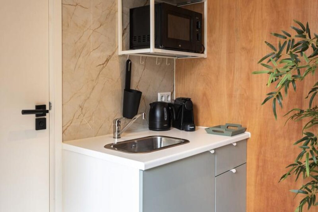 Step into a serene seaside retreat in the charming coastal town of Zandvoort. This modern, soundproofed studio is a haven of tranquility, blending warm wooden accents with soothing natural tones to create a cozy and inviting atmosphere. Just a short stroll from the North Sea's sandy shores, it’s the perfect escape for couples or solo travelers seeking relaxation and rejuvenation. \n\nThe studio is thoughtfully designed for comfort and convenience. A plush 160x200 box-spring bed ensures restful nights, while the kitchenette allows for light meal preparation. The private bathroom features a walk-in shower and modern amenities. The highlight of this retreat is the southwest-facing private terrace, where you can bask in the afternoon sun or enjoy a peaceful morning coffee surrounded by the gentle coastal breeze. With Wi-Fi, TV, and all essentials like bed linen and towels provided, your stay promises to be as comfortable as it is memorable. \n\nZandvoort offers a wealth of activities and attractions to suit every interest. Explore the nearby national parks, De Waterleidingduinen and Kennemerduinen, perfect for walking or cycling amidst stunning natural landscapes. For the adventurous, try surfing, kitesurfing, or even mountain biking around the renowned Circuit Park Zandvoort. The town also boasts vibrant beach clubs, restaurants, and a unique nudist beach for those seeking something different. \n\nConveniently located, the studio is just a short walk from Zandvoort’s train station, connecting you to Amsterdam in under 30 minutes. Whether you’re looking to unwind by the sea or explore the cultural treasures of the Netherlands, this stylish studio offers the ideal base for an unforgettable getaway.