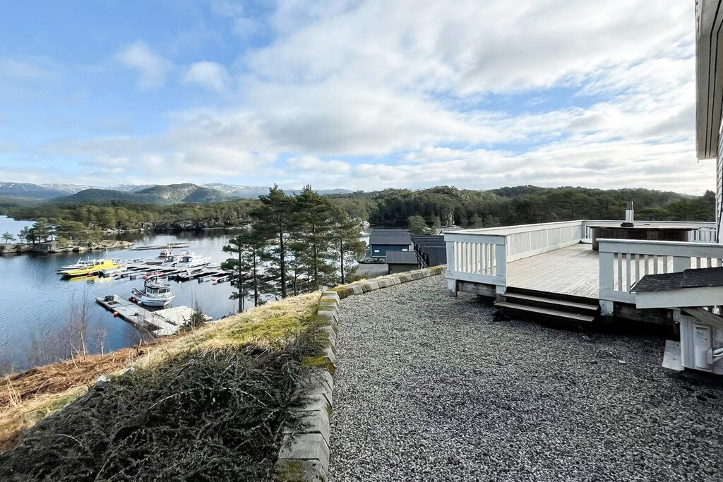 Pleasant holiday home by the Fensfjord close to the ocean. The house is nestled in a beautiful coastal landscape, surrounded by coves and islets. An eldorado for hobby anglers where you can fish all year round, rarely high waves. The holiday home is on one level, practical and well maintained. Living room with open kitchen, one large, tiled bathroom with shower and associated laundry room. 4 good bedrooms, one with a double bed, two with 2 single beds and one with a single bed which can be pulled out to a double bed. Heating with heat pump. Free of charge Internet via fiber. National TV and Apple TV for streaming Nordic, European and international TV channels. On the large terrace, there is a wood-fired hot tub, garden furniture, barbecue, and a panoramic view of the fjord. 50 m to the quay with the boats. In the boathouse, there is a 200 liter freezer and a built-in fish cleaning area with light and running water. Plenty of space for fishing equipment. A few km from the house there is a large sandy beach; you can also swim from the bathing steps on the jetty. The area offers several great hiking opportunities. You can fish for trout in Lake Slortem, 1.3 km away, and salmon in the river Frøysetelva 4.6 km away. The nearest service point is Hosteland with a grocery store, restaurant and petrol station. Every Saturday you can buy fresh crayfish and other seafood from a fishing boat; this can be arranged in advance if you want to secure a few kilos. If you want a city experience, Bergen is only a short hour’s drive away, known for Bryggen, Fløybanen, the fish market and lots of restaurants and shopping places. Boats for rent: Interf 59385 isher 20 FT 40 HP with GPS, chartplotter/sounder Hobby 555 18 FT 40 HP with GPS, chartplotter/sonar