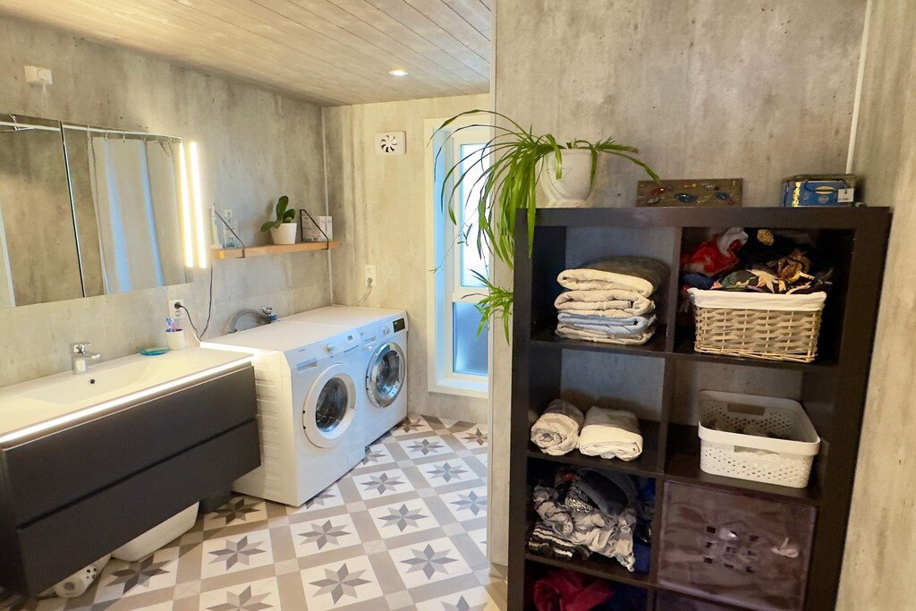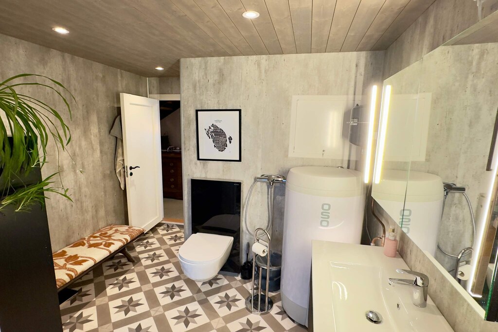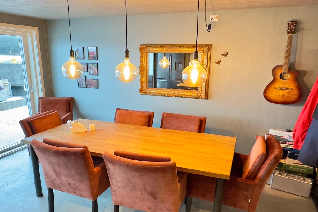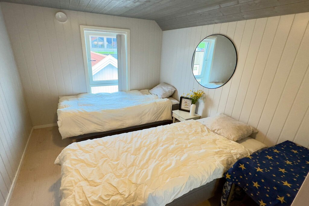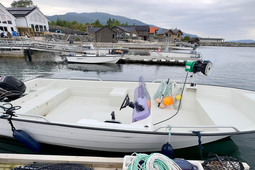 Lovely holiday home where you can combine fishing adventures and family time. Spectacular sea views and fishing opportunities right outside the door. Charming fisherman's cottage by the sea, the ideal choice for both fishing enthusiasts and families. The cottage has three bedrooms, one on the ground floor and two on the first floor. On the first floor you will also find the living room with a fireplace and TV. Downstairs there is one bedroom, bathroom and a nice, well-equipped kitchen/dining room in an open plan. Here, meals can be enjoyed at the dining table with a dream view of the sea. The holiday home is surrounded by beautiful nature, perfect for fishing, hiking and relaxation. Great sandy beaches approx. 1 km from the cottage. Boat for rent: 20-foot boat with 60 hp engine, GPS, chart plotter and echo sounder, ideal for exploring nearby fishing spots A second, comparable boat can be rented on request to the owner.