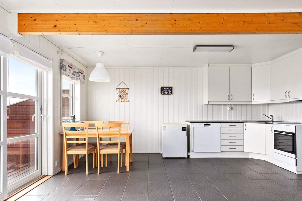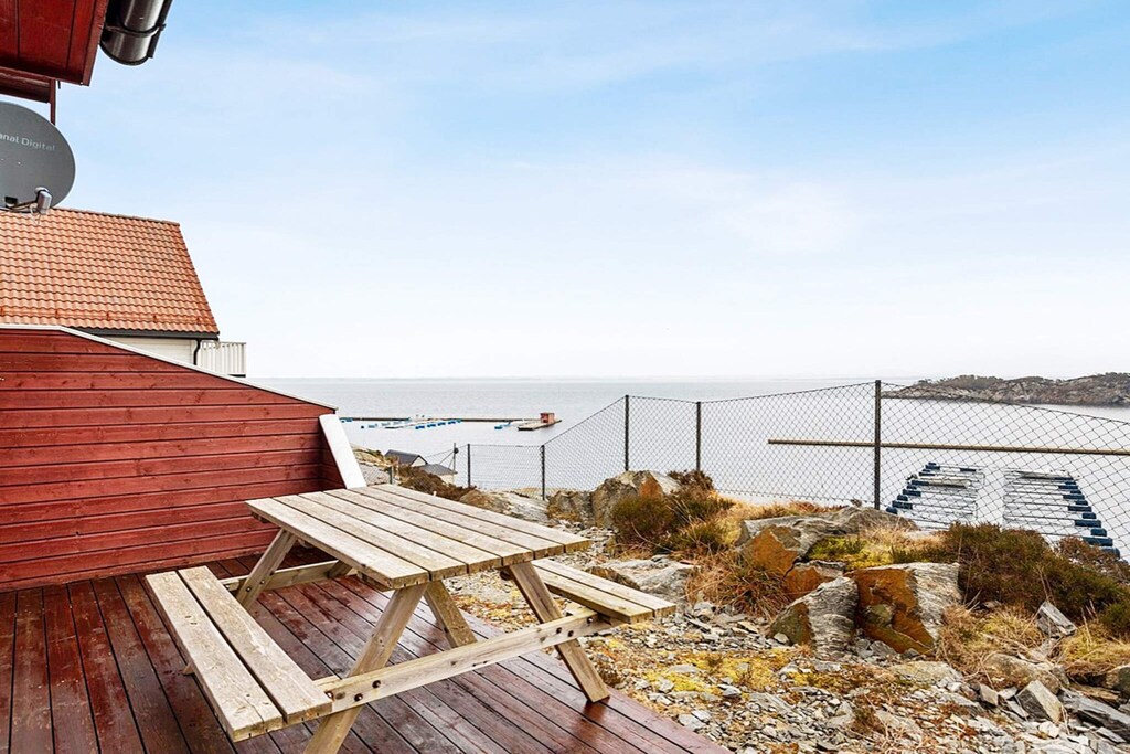Holiday house/apartment with an idyllic, scenic location and a view of the marina and the Hjeltefjord. Final cleaning included in the price. The holiday apartment has a combined living room and kitchen. Smart TV (Google TV/Chromecast) with channels via fiber. Internet speed: 10 Mbits. Three bedrooms each with 2 single beds. The nearest town with a grocer is 11 km from the holiday home. The proximity to the sea and nature makes this a perfect apartment for anyone who enjoys the outdoors. Immediate proximity to the sea offers endless opportunities for those who know how to appreciate this. The area has several great hiking trails. Fjell Festning is worth a visit if you want to combine great nature and historic grounds, 50 km from the holiday home. 14 km to the Coastal Museum in and 64 km to the Northern Maritime Museum in Tælavåg. 24 km to the Rongesundet bridge and the coastal guard path to the Ormhilleren open air area and over heathland and svaberg further west. Hjeltefjorden is rich in fish, as it is the close to the North Sea. Indoor filleting bench with light and running water. Boat for rent: 1x 18 foot boat with 60 HP engine, GPS/chart plotter/sonar, 6 rod holders.