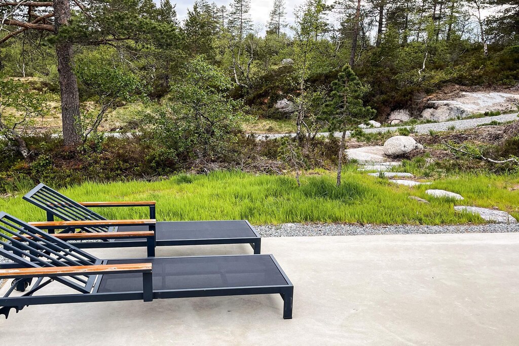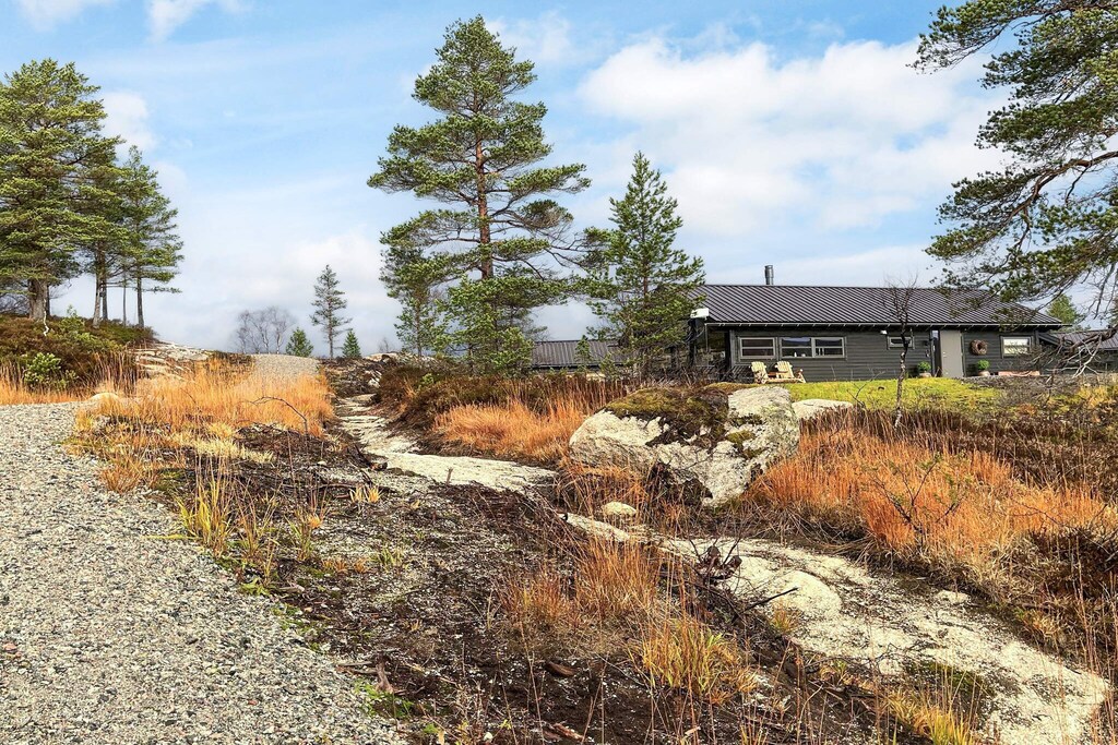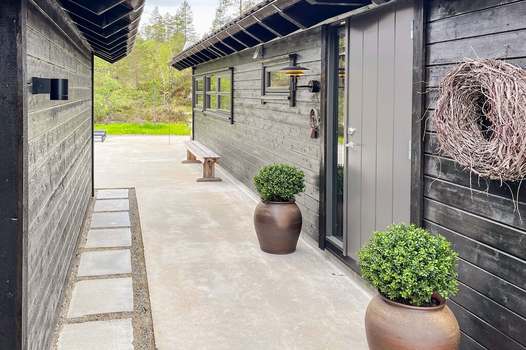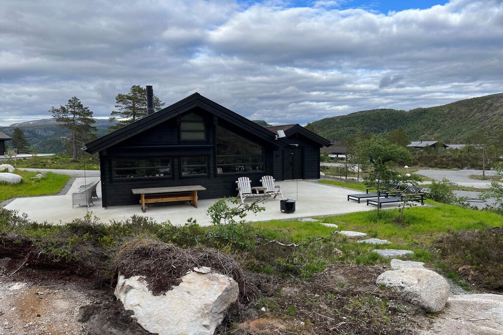 Holiday home at Furuåsen in Sirdal surrounded by fantastic nature. Final cleaning is included in the price. Nice and modern cabin built in 2024 in scenic surroundings. 3 bedrooms with double beds. A spacious loft is great as a playground for the children, and with a mattress laid out, there is sleeping space for two more people (8 in total). The cabin has 2 bathrooms and a well-equipped kitchen. Dishwasher and washing machine. Wood stove in the living room. Electricity and firewood are included in the rent. Large, beautiful outdoor area/terrace around the cabin. In a large shed you will find a barbecue and garden furniture as well as other equipment. There is a beach in the lake approx. 200 meters from the cabin. Countless beautiful hiking trails in the area. In the river, a 4-minute drive from the cabin, there is free fishing. Approx. 6 km from the cabin you will find the Tjørhom activity center with countless activities (https://sirdalfjellpark.no). Welcome to a great holiday in scenic surroundings. Please note that guests will need to bring bed linen and towels.
