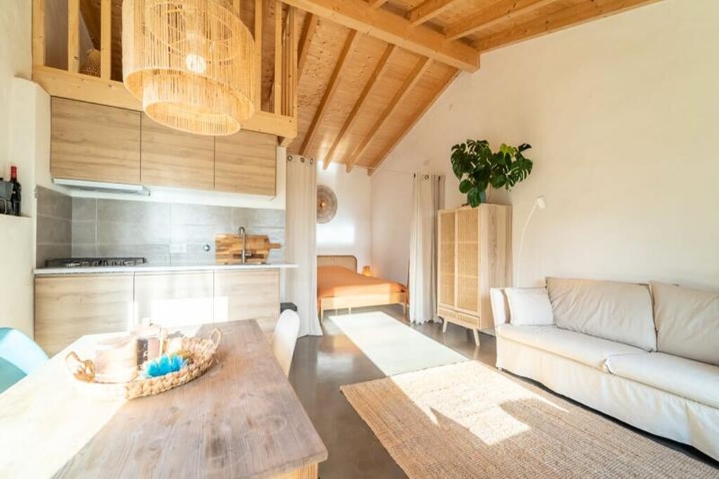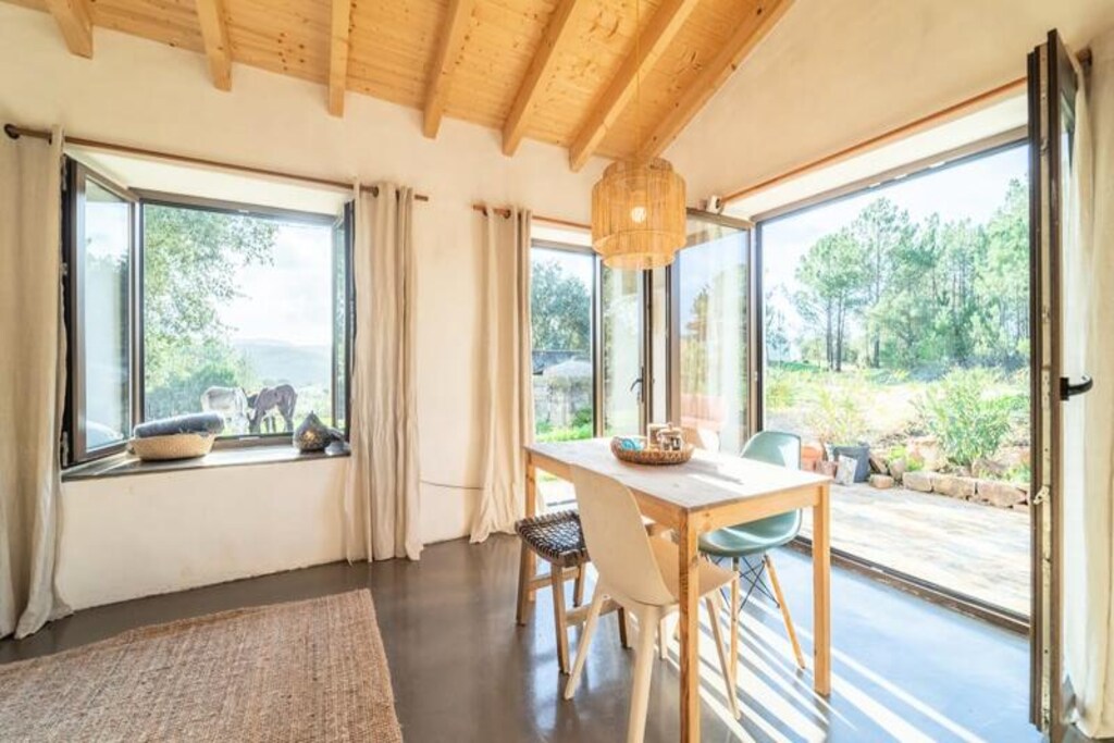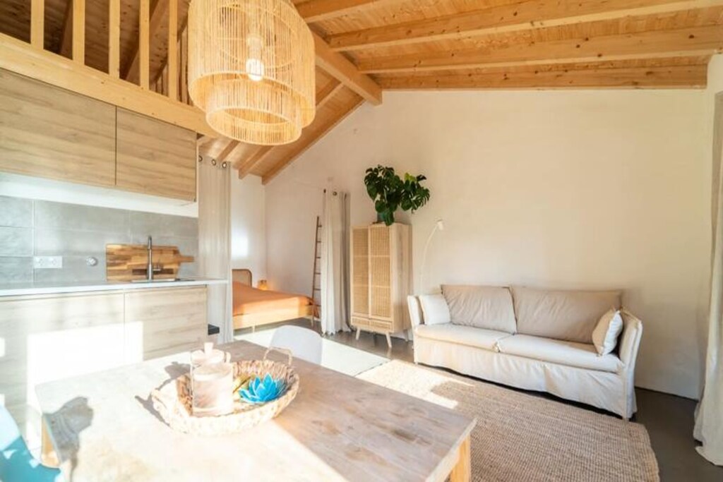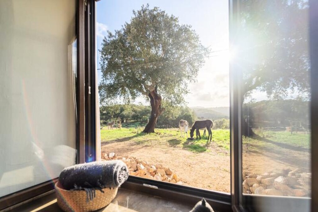 Amidst the serene Algarve countryside, just minutes from the charming town of Aljezur, lies a delightful ground-floor studio that promises a retreat filled with tranquility and natural beauty. Here, mornings begin with the gentle rustle of leaves and the occasional greeting from the farm’s friendly donkeys, while evenings are perfect for unwinding on the private porch under a starlit sky. This is a place where nature’s rhythm sets the tone for your holiday. \n\nThe studio is thoughtfully designed to accommodate up to four guests, featuring a spacious double bed and a mezzanine ideal for two children. Large windows flood the living area with light and offer sweeping views of the countryside. A fully equipped kitchen invites you to prepare meals with fresh local produce, while the private bathroom ensures comfort and convenience. Linens, towels, and Wi-Fi are provided, making your stay as seamless as possible. \n\nLocated near Aljezur, you’ll find yourself at the heart of the Costa Vicentina Natural Park, a region celebrated for its dramatic cliffs, pristine beaches, and world-class surfing conditions. Whether you’re exploring the cobbled streets of Aljezur, sampling local delicacies like Medronho or honey, or hiking along coastal trails with the sound of the Atlantic waves as your soundtrack, this area offers endless opportunities for adventure and relaxation. \n\nQuinta da Paz is more than just a place to stay; it’s an invitation to experience the Algarve’s authentic charm. With its peaceful setting, friendly farm animals, and proximity to both nature and culture, this studio is perfect for families or couples seeking a memorable escape. Let the beauty of Aljezur and the warmth of Quinta da Paz create lasting holiday memories.