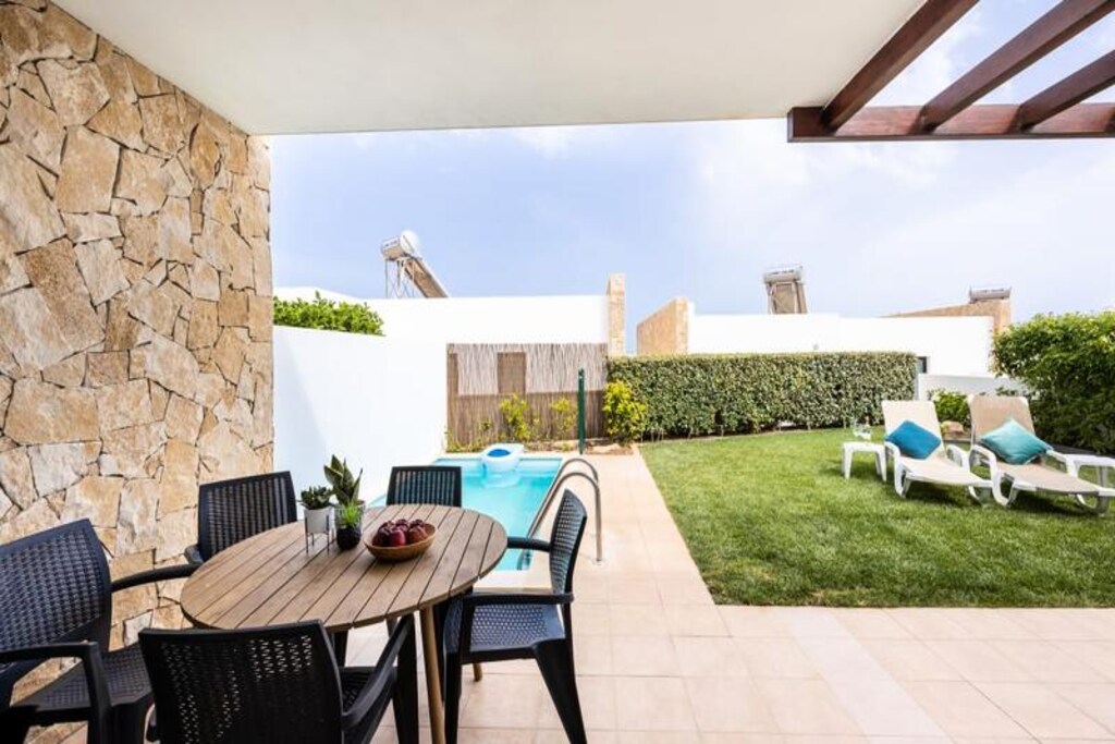 At the gateway to the charming village of Sagres, this modern holiday home offers a serene retreat for up to six guests. Surrounded by the natural beauty of Portugal’s Algarve coast, the property is a haven for beach lovers and adventure seekers alike. With its private garden and heated swimming pool, you’ll find the perfect balance of relaxation and outdoor fun just moments from some of the region’s most stunning beaches, including Martinhal and Tonel, both only 1000 meters away.