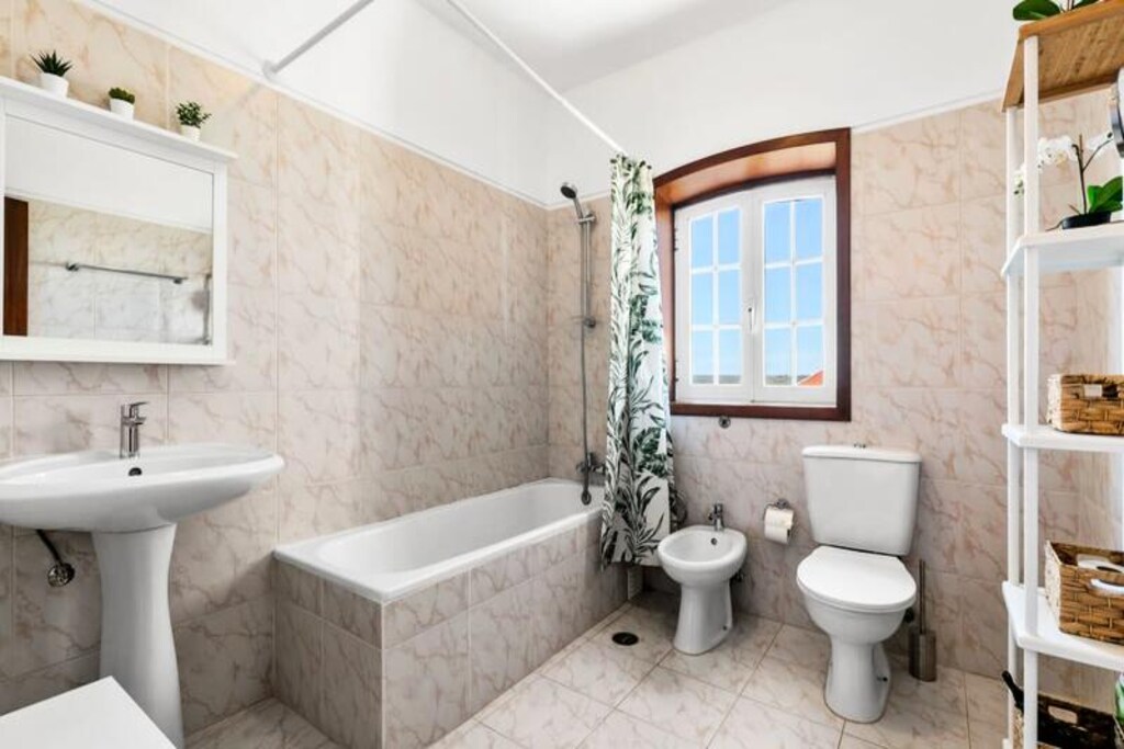 Step outside to discover the property’s delightful outdoor spaces. A lush garden with a small dining table greets you at the front, while a large patio at the rear boasts a barbecue and ample seating for al fresco meals. The peaceful neighborhood is perfect for families with children, though please note that the stairs are not equipped with safety gates. Free street parking is available nearby, and while buses run regularly to Sagres, renting a car is recommended for exploring the region.