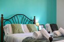 Inside, the townhouse is thoughtfully designed to cater to your every need. The first floor features three inviting bedrooms: a master bedroom with a double bed, en-suite bathroom, and private balcony; a cozy double bedroom with patio access; and a family room accommodating up to three guests with a small double bed and a single bed. Two additional bathrooms, a bright and spacious living area, and an open-plan kitchen on the ground floor ensure a comfortable stay for up to seven guests. Modern amenities such as Wi-Fi, a television, and a washing machine are provided, along with linens and towels for your convenience.