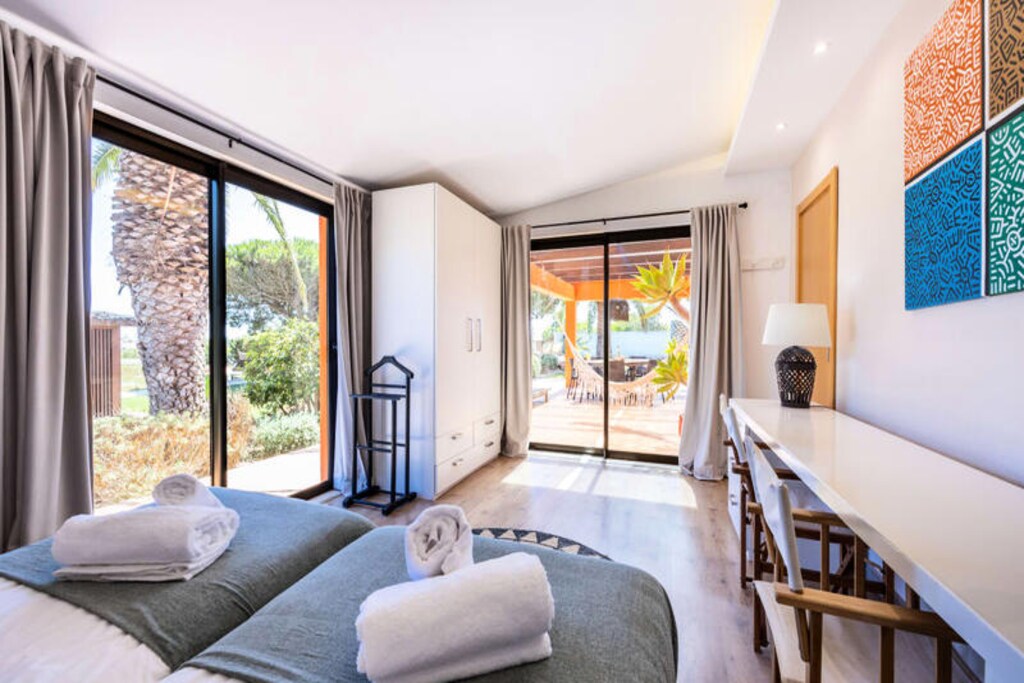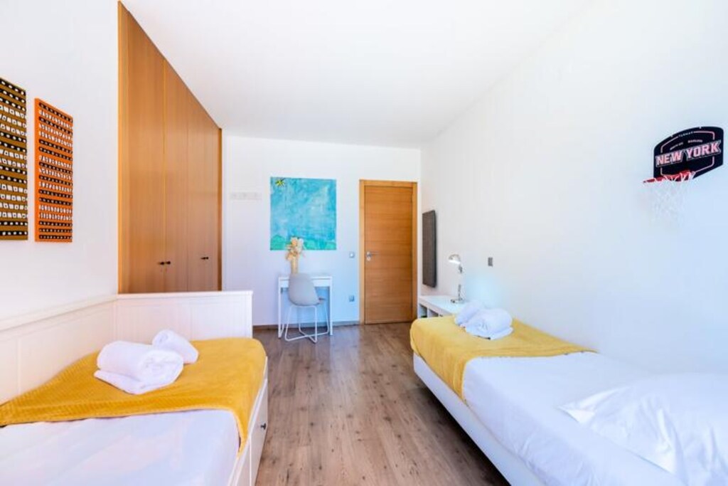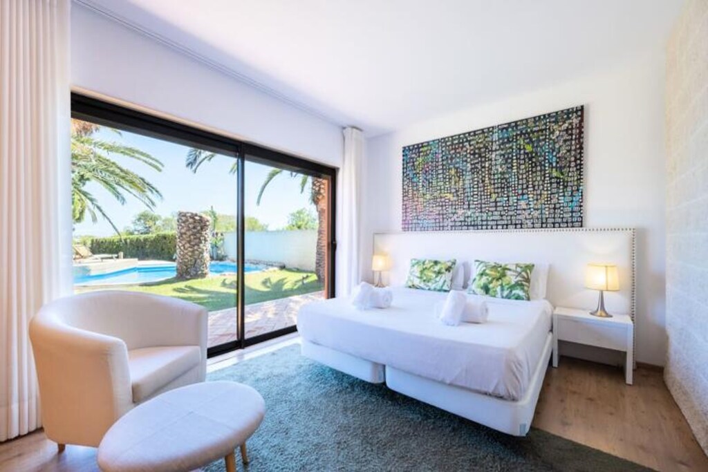 Designed with comfort and style in mind, Sagres Villa Cercado features four spacious bedrooms that can accommodate up to eight guests. The villa’s open-plan layout includes a fully equipped kitchen, a bright and airy living room with multilingual satellite TV, and air conditioning to keep you cool during warm summer days. Step outside to discover your private oasis: a large garden with a sparkling pool, a barbecue area, and a terrace perfect for al fresco dining under the stars. Free Wi-Fi ensures you stay connected, while linens and towels are provided for your convenience.