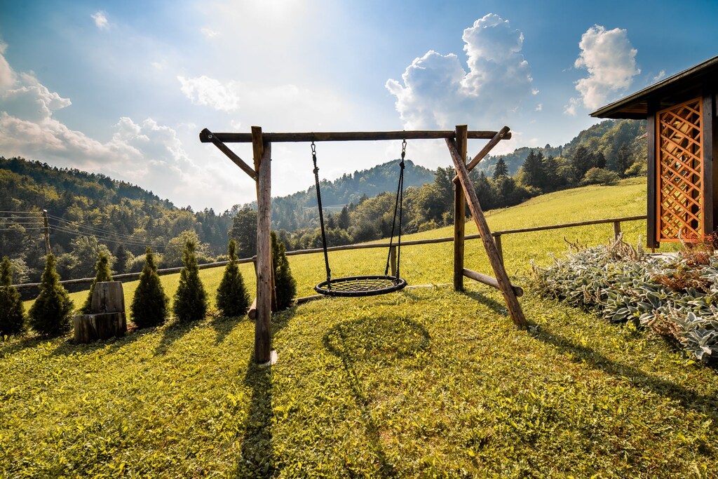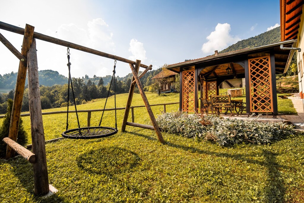 Bloomfield Retreat in Rečica ob Savinji, Slovenia, offers a serene country house equipped with a sauna, perfect for a relaxing stay. The house includes 3 bedrooms, a fully equipped kitchen, and a bathroom with a walk-in shower. It features a private terrace, mountain views, and an outdoor dining area with BBQ facilities. Guests can enjoy activities like cycling and hiking nearby, and pets are welcome upon request. Located in a peaceful setting, it is ideal for those seeking tranquility, with easy access to local attractions and nature.