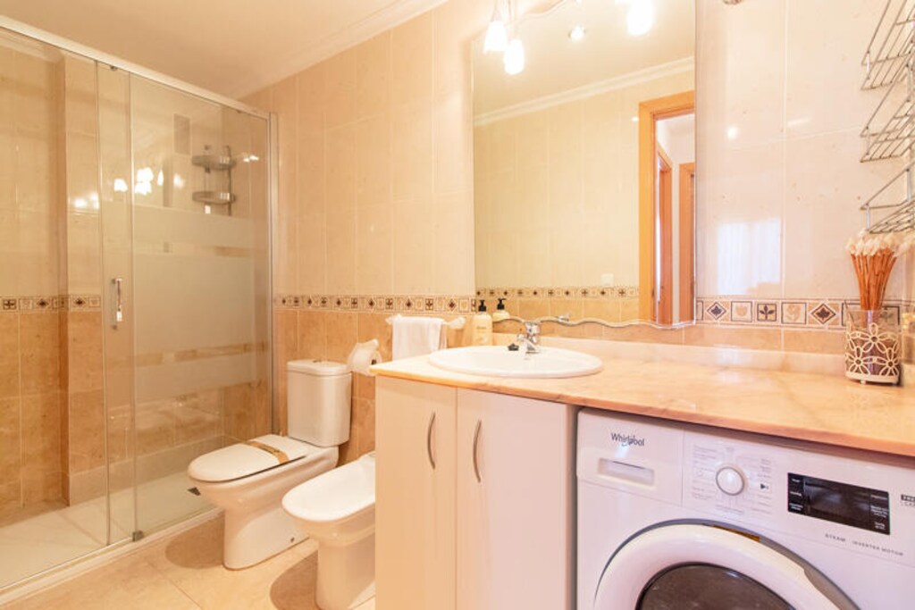 Spanning 205 m², the apartment comfortably accommodates up to four guests across two well-appointed bedrooms. The spacious interior is complemented by a 70 m² terrace, ideal for al fresco dining or soaking up the Spanish sun. Equipped with modern amenities such as air conditioning, Wi-Fi, a washing machine, dryer, and mosquito nets, every detail has been considered for your comfort. The American-style kitchen, complete with a ceramic hob, refrigerator, oven, and coffee maker, ensures you can prepare meals with ease. A shared swimming pool, including a children’s pool, adds to the appeal, offering a refreshing escape on warm days.