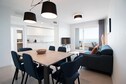 Spanning 150 m², the apartment comfortably accommodates up to six guests across three well-appointed bedrooms. The bright and airy interiors are complemented by a 30 m² terrace, ideal for al fresco dining or simply soaking in the tranquil surroundings. The property boasts a host of conveniences, including a fully equipped American-style kitchen with induction cooktop, dishwasher, and coffee maker, as well as modern comforts like Wi-Fi, air conditioning, central heating, and a washing machine. For added luxury, guests can enjoy access to a communal swimming pool, a spa, and various sports facilities such as tennis, squash, and paddle courts. Covered parking within the building ensures a hassle-free stay.