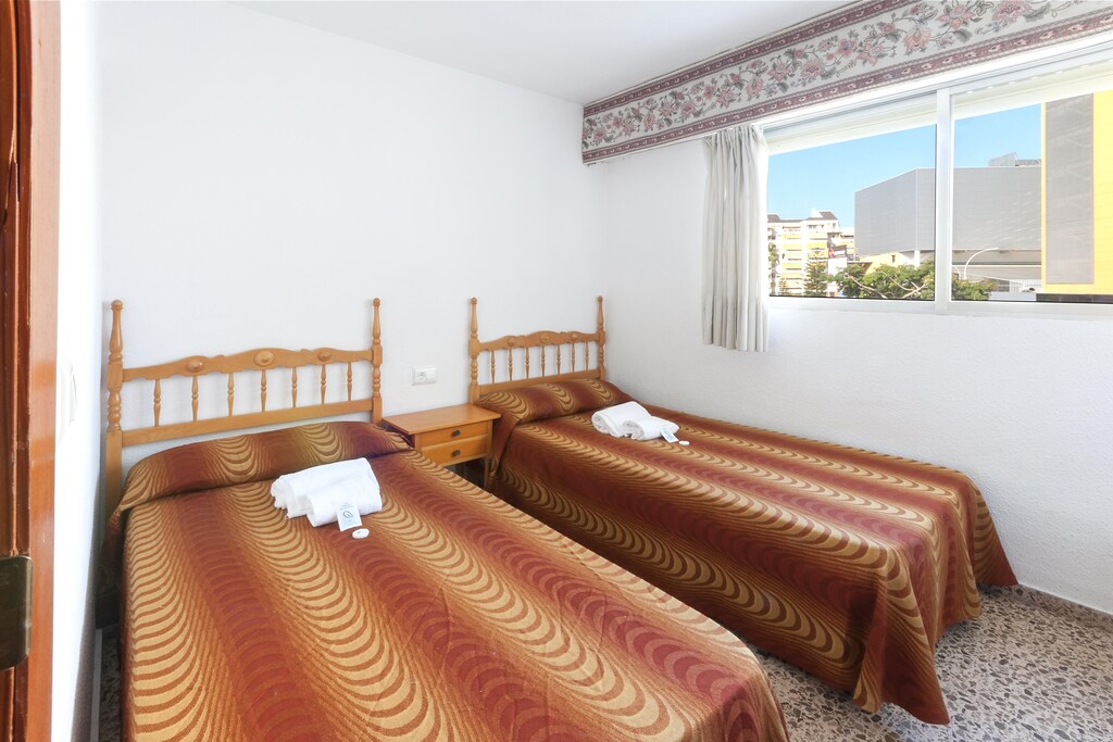 This 95m2 apartment is situated on the second floor, with elevator. There are 3 bed rooms: 1 with a double bed and an en-suite bathroom with a bath tub and 2 bedrooms with two individual beds each. There is another bathroom with a bath tub, for general use.