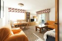 In the spatious living- and dining room you will find a sofa bed (which offers sleeping places for two extra persons), a television and a dining table for 8. The independent kitchen works with gas and counts with all necessary utensils to prepare a great meal during your stay. You will also find a washing machine, an iron and an ironing board.