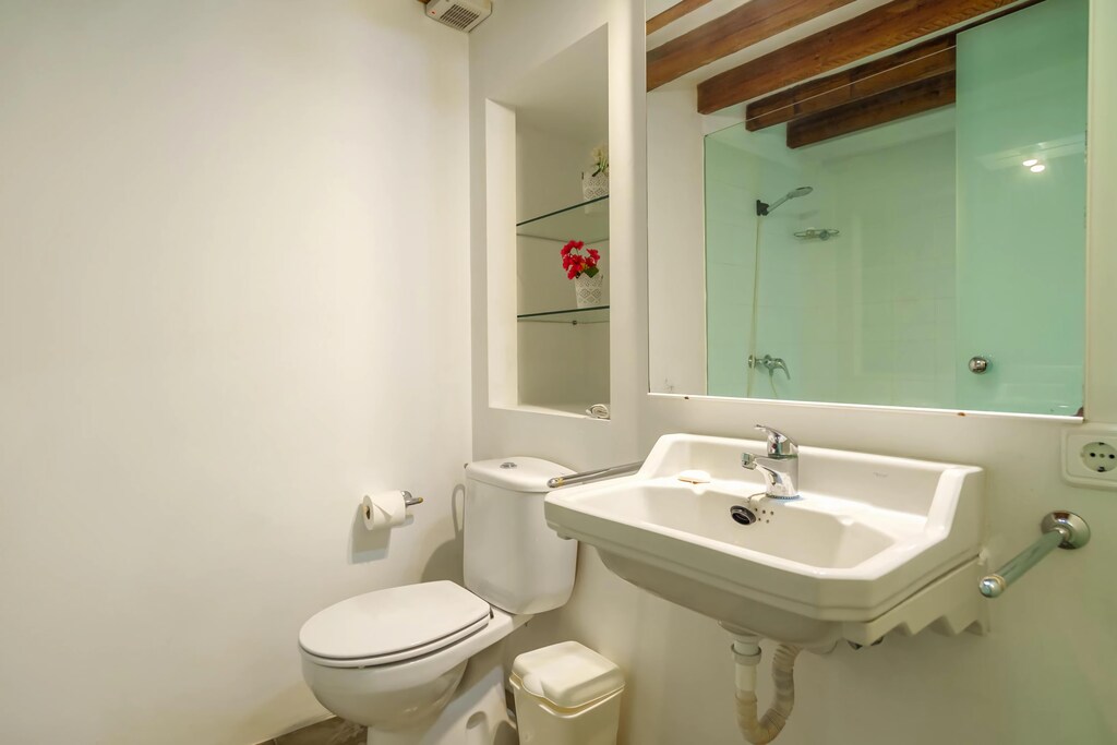 Double bed, Shower, Washbasin, Toilet, Air conditioning