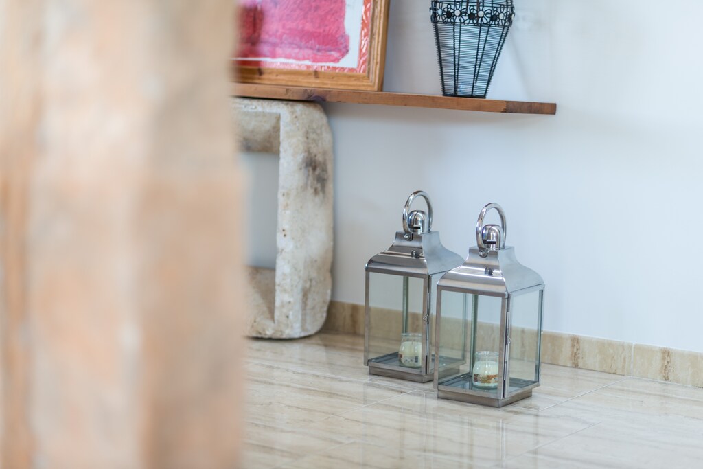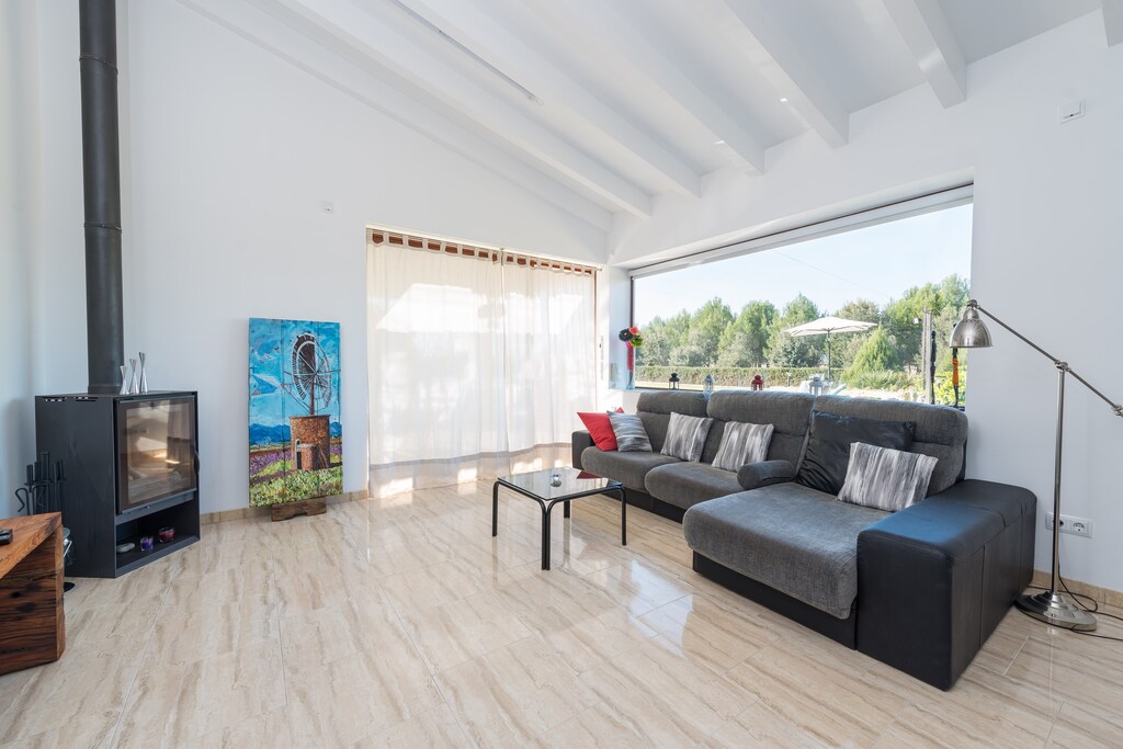 You will enjoy the exteriors of this finca, with total privacy, thank to the nice Mediterranean weather. You can sunbathe on one of the 4 sun loungers around the pool while reading a magazine or having breakfast at the terrace early in the morning profiting the fresh air in the morning and the great views of the mountains. In fact, if you feel like a fresh orange juice, you can do it with the oranges taken from the orange trees, although this depends on the season. When it is really hot, nothing like a swim in the large salted pool which sizes 16 x 3.5 metres and with a depth that goes from 1 to 2 metres, or have a shower outside. The porch is perfect for a family dinner and a delicious barbecue at night.